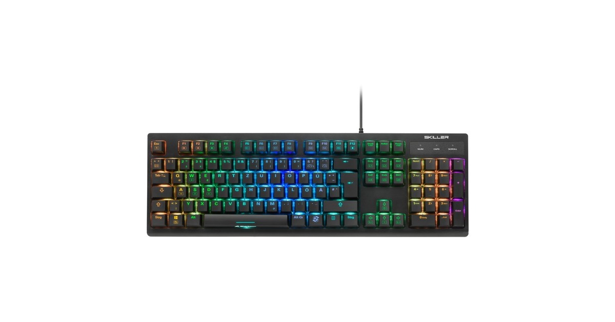 Die SKILLER SGK30 ist eine mechanische Tastatur, welche nicht nur mit einer hochwertigen Verarbeitung, sondern auch mit zahlreichen weiteren Features überzeugen kann, die das Herz eines jeden Gamers und PC-Enthusiasten höherschlagen lassen. In schlichtem Schwarz gehalten, sorgt die integrierte RGB-Beleuchtung für spektakuläre Effekte, die sich dank einer Vielzahl an Einstellungsmöglichkeiten zusätzlich auf den persönlichen Geschmack individuell anpassen lassen. Dank der mitgelieferten Software der SKILLER SGK30 können bis zu 20 Spieleprofile abgespeichert werden, ein Zugriff auf diese ist jederzeit innerhalb weniger Klicks auf die gewünschte Voreinstellung möglich. Mit einer Polling-Rate von 1.000 Hz sowie Anti-Ghosting und N-Key-Rollover ist die SKILLER SGK30 dabei nicht nur für Gamer geeignet, die auf reaktionsschnelle Eingabegeräte Wert legen, sondern stellt auch für Schnellschreiber im Büroalltag eine stylische Alternative dar.Art.-Nr.: 1628220