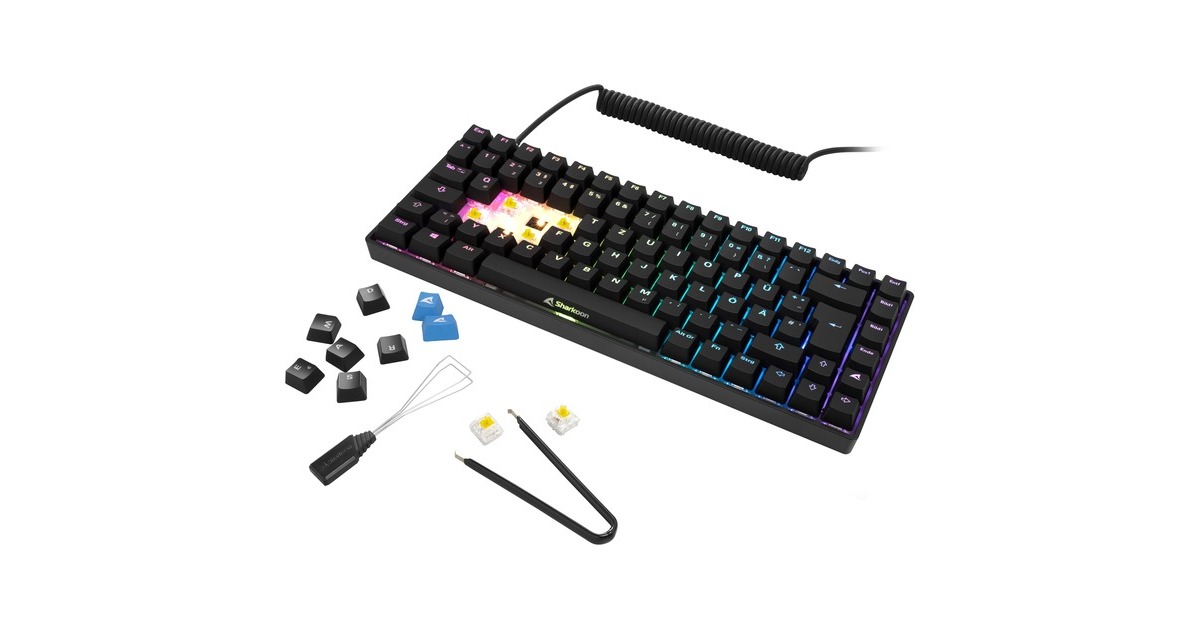 Die Hot-Swap-fähige Sharkoon SKILLER SGK50 S3 Gaming-Tastatur setzt auf ein durchdachtes 75-%-Format und ist vom Schalter über die Tastanordnung vollständig anpassbar. Ihr schlanker Formfaktor erreicht die gleiche Funktionalität einer Drei-Block-Tastatur bei minimiertem Platzverbrauch. Neben den üblichen Tastenfunktionen befindet sich auch eine zusätzliche Sharkoon-Taste mit an Bord, über die der Webbrowser aufgerufen werden kann. Für einen bestmöglichen Klang der verbauten Gateron Schalter sorgt eine doppellagige Silikondämpfung und vorgefettete Stabilisatoren. Kreativität und Vielfalt sind mit der SKILLER SGK50 S3 keine Grenzen gesetzt, denn die vorinstallierten Schalter lassen sich für ein ganz individuelles Tippgefühl jederzeit nach Lust und Laune gegen alle Alternativen mit 3 und 5 Pins tauschen. Nativ erlaubt die Tastatur einen hohen Funktionsumfang ganz ohne störende Software, bis hin zur Makroprogrammierung. Zwei Makros mit jeweils bis zu 16 Aktionen können mittels Tastenkombinationen eingerichtet und überschrieben werden. Die SKILLER SGK50 S3 ist zusätzlich kompatibel zu den Open-Source-Softwares QMK und VIA, mit denen die Tastatur bis hin zur Sharkoon-Taste ganz nach eigenen Bedürfnissen programmiert werden kann. Wie die restlichen Funktionen lässt sich auch die Beleuchtung mit wenigen Handgriffen einstellen. Hierzu stehen verschiedene ein- und mehrfarbige Beleuchtungseffekte in unterschiedlichen Variationen bereit. Die verbaute Positionierungsplatte aus Polycarbonat sorgt dabei nicht nur für einen verbesserten Klang der Schalter, sondern auch für eine gleichmäßige Verteilung der Beleuchtung. Das starke Auftreten der SKILLER SGK50 S3 wird durch ein für die Serie typisches abnehmbares Spiralkabel mit USB-C- und USB-A-Anschluss abgerundet, das für eine jederzeit perfekte Optik weiter optimiert wurde.Art.-Nr.: 1914229