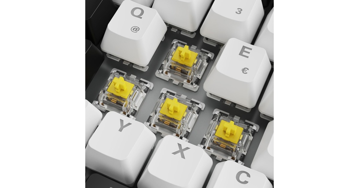 ABS-Tastenkappen, doppellagige Silikondämpfung, Positionierungsplatte aus Polycarbonat, QMK- und VIA-kompatibel |