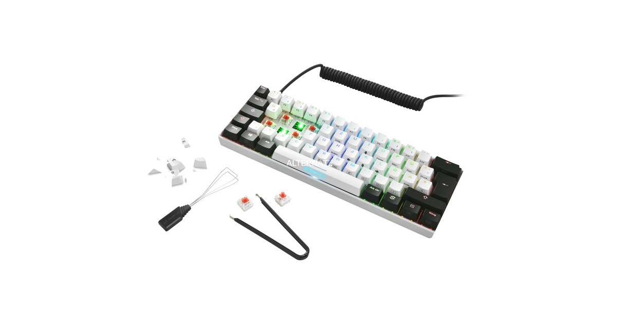 Zusätzliche Tastenkappen, Tastenkappenzieher, Switch Puller Tool, Anleitung, USB-Kabel (180 cm) |