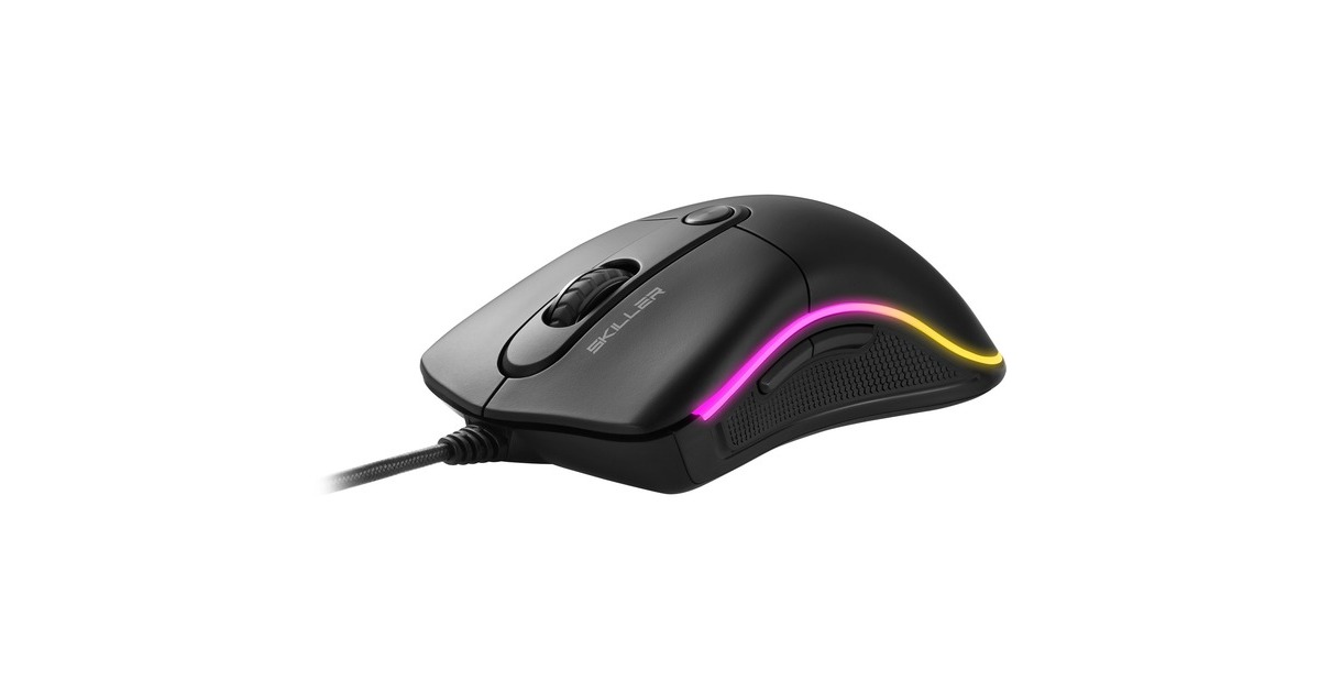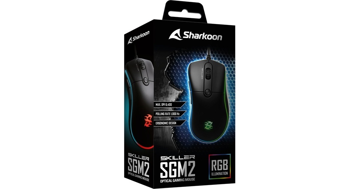 Die Sharkoon SKILLER SGM2 ist eine optische Gaming-Maus im ergonomischen Retrodesign. Ausgestattet mit der entsprechenden Technik jedoch ohne unnötiges Drumherum ist die SKILLER SGM2 mit ihrer klassisch-ergonomischen Form für Rechtshänder mit mittelgroßen bis großen Händen angenehm zu Handhaben. Sechs Tasten ermöglichen umfangreiche Aktionen, darunter zwei leicht zugängliche Daumentasten an der Seite für besonders schnelle Klicks. Optisch besticht die SKILLER SGM2 durch ihr klassisch-schwarzes Design, das durch die einrahmende RGB-Beleuchtung mit sechs Effekten individualisiert werden kann - und zwar ganz ohne störende Software über einen Schalter an der Unterseite. Und wer es lieber schlicht mag, kann auch ganz auf die Beleuchtung verzichten. Für die nötige Präzision ist die SKILLER SGM2 mit einer im E-Sport üblichen Polling-Rate von 1.000 Hz sowie einem optischen Sensor ausgestattet, der sich mittels DPI-Wahlschalter in vier Schritten bis zu 6.400 DPI takten lässt. Das beleuchtete SKILLER-Logo dient dabei als DPI-Anzeige.Art.-Nr.: 1398508