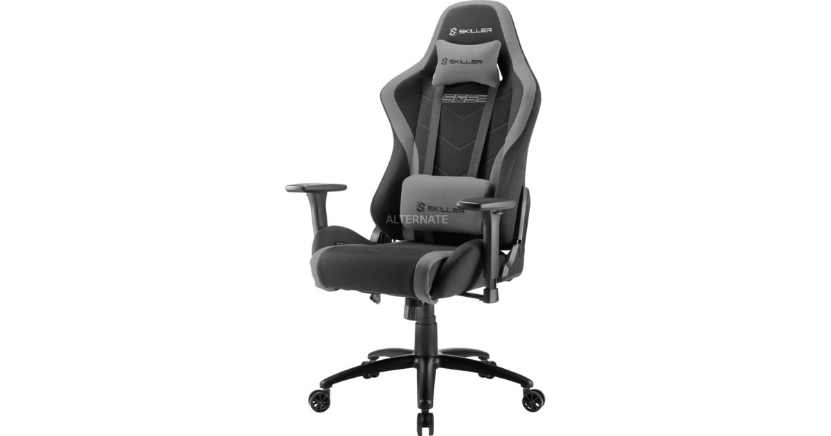 Eingerahmt in farbigen Akzenten und ansonsten ganz in Schwarz gehalten, präsentiert sich der SKILLER SGS2 Gaming Chair von Sharkoon optisch genauso sportlich wie sein großer Bruder. Beim Bezugsmaterial setzt der SGS2 jedoch nicht auf Kunstleder, sondern ganz auf anschmiegsamen, atmungsaktiven Stoff. Dieser überzieht die stützende Schaumstoffpolsterung an Rückenlehne und Sitzfläche und weist sorgsam gestickte Logos und dezente Absteppungen in der Akzentfarbe Grau auf. Neben der sportlichen Optik kann der SGS2 vor allem auch mit seiner hochwertigen Verarbeitung und den vielfältigen, ergonomischen Einstellungsmöglichkeiten punkten. Zur Unterstützung einer ergonomischen Sitzhaltung hat der SKILLER SGS2 Gaming Chair praktische 3-Wege-Armlehnen. Diese können jederzeit auf die benötigte Armlänge, in gewünschter Höhe sowie in einem individuellen horizontalen Winkel eingestellt werden. Eine stabile Gasdruckfeder der Klasse 4 sorgt für eine optimale Sitzhöhe und Stabilität. Dank komfortabler Wippfunktion lässt es sich auch in hektischen Spielsituationen bei entspannender Schaukelstuhlatmosphäre in einem Winkel von 3° bis 18° wippen. Zur Unterstützung von Nacken und Wirbelsäule ist auch der SGS2 mit einem Kopf- und Lendenkissen aus atmungsaktivem Stoff ausgestattet. Diese sind in Akzentfarbe gehaltenen und können bei Bedarf mit wenigen Handgriffen angebracht oder abgenommen werden. Für kleinere Ruhephasen zwischendurch kann die Rückenlehne des SGS2 in einem Winkel von 90° bis 160° festgestellt werden. Damit der SGS2 jederzeit stabil und sicher ist, weist er im Inneren eine robuste Stahlrahmenkonstruktion auf. Für weitere Stabilität sorgt das massive Fußkreuz, das ebenfalls aus belastbarem Stahl gefertigt ist und bis zu 110 Kg sicher tragen kann. Die fünf großen 60-mm-Rollen unterstützen einen stabilen Stand und sorgen für Mobilität auf ebenen Untergründen. Dank benutzerfreundlicher Anleitung und beiliegenden Werkzeug ist der Aufbau des SGS2 stressfrei und im Handumdrehen erledigt.Art.-Nr.: 1327426