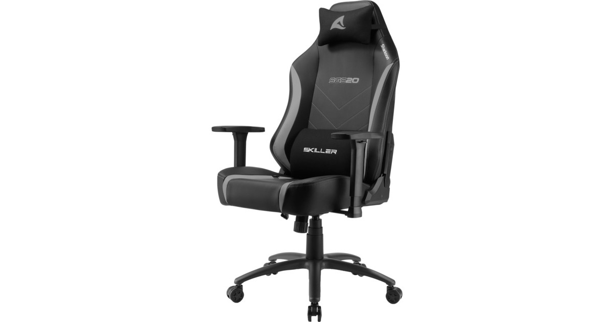 Beim SKILLER SGS20 handelt es sich um einen bezahlbaren Stuhl mit besonders großer Sitzfläche und der gewohnt hohen Qualität eines Sharkoon Gaming-Stuhls. Im Überzug aus robustem Kunstleder gliedert sich der SKILLER SGS20 problemlos in das heimische Arbeitszimmer ein. Die stromlinienförmigen Nähte und Farbapplikationen auf Rückenlehne und Sitzfläche setzen anbei farbliche Akzente. Auch kleine Reinigungsarbeiten sind am Kunstlederpolster kein Problem: Mit einem nebelfeuchten Putztuch kann der SGS20 ohne Weiteres von Flecken befreit werden. Seine 55 Zentimeter breite Sitzfläche bietet genügend Freiraum auch für großgewachsene Personen, die es sich auf ihrem Gaming-Stuhl gemütlich machen wollen. Damit man stets eine einwandfreie Sitzposition bewahrt, lässt sich der SKILLER SGS20 mühelos in der Höhe der Sitzfläche justieren. Auch die Armlehnen können mit wenigen Handgriffen in Höhe und Ausrichtung eingestellt werden. Sie lassen sich außerdem vor- und zurückbewegen. So kann der Stuhl jederzeit bestmöglich auf die eigene Person abgestimmt werden. Die Kopf- und Lendenkissen unterstützen durch Druckentspannung die Wirbelsäule beim Sitzen. Auf diese Weise wird eine korrekte Körperhaltung begünstigt und Nacken- und Rückenschmerzen effektiv vorgebeugt. Neben einer eingebauten Wippmechanik kann auch die Rückenlehne um bis zu 160 Grad zurückgestellt werden. Gemeinsam ermöglichen diese Funktionen Momente der Erholung während kurzer Auszeiten vor der nächsten Runde. Dank seiner stabilen Stahlrahmenkonstruktion und der Gasdruckfeder der Klasse 4 bietet der SKILLER SGS20 zuverlässigen Halt für eine Belastung bis zu 120 Kilogramm. Er ist außerdem geeignet für Nutzer von einer Größe bis 185 Zentimeter.Art.-Nr.: 1770777