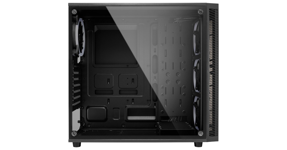 Seitenteil aus gehärtetem Glas, Innenlackierung, Kabelmanagement-System |