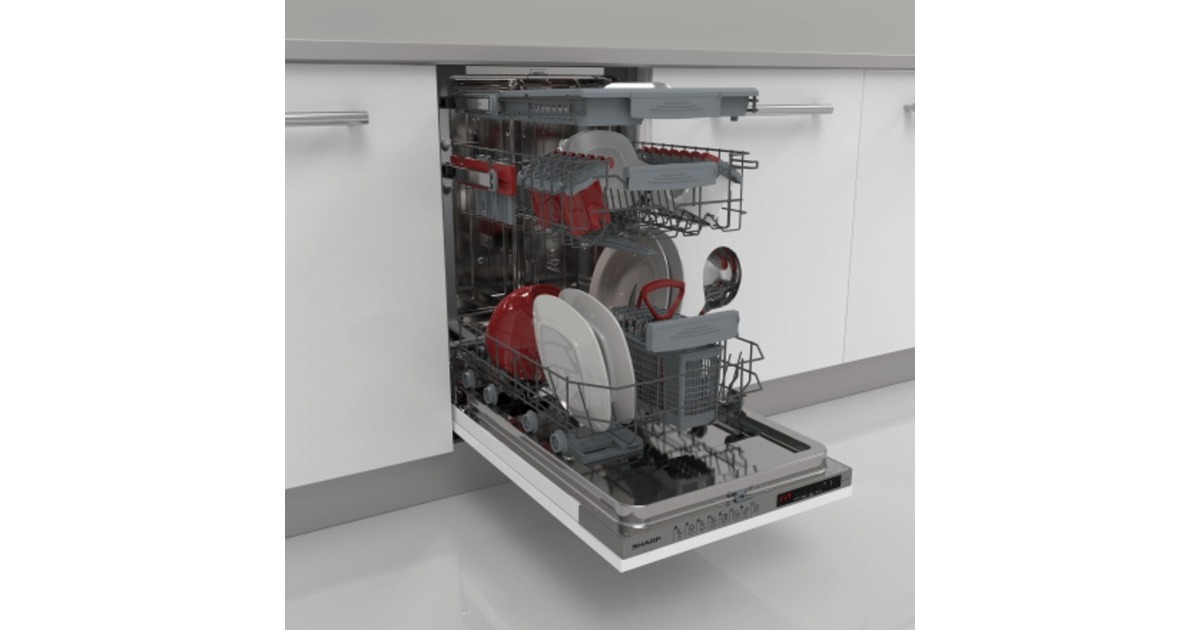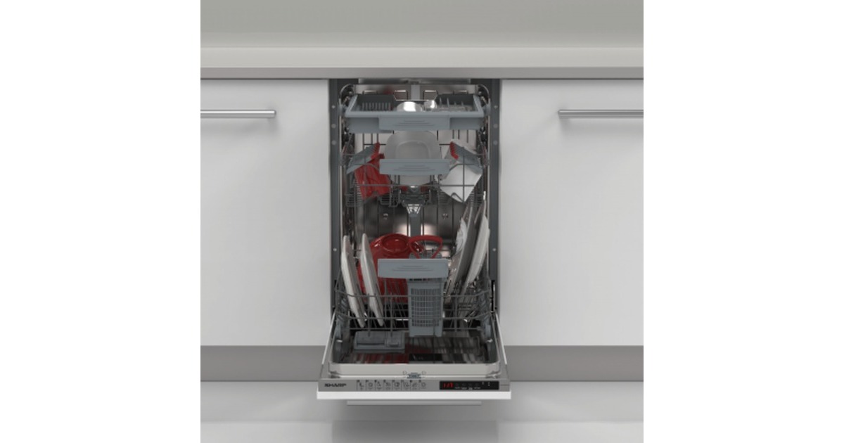 Der vollintegrierbare Sharp Geschirrspüler QW-NS14I49EX-DE nimmt bis zu 10 Maßgedecke auf und bietet mit fünf Spülprogrammen eine ausreichend große Programmauswahl. Dank Quick 30' erhält man sauberes Geschirr in nur 30 Minuten und das Express 50’-Programm spült Geschirr bei 65°C in nur 50 Minuten blitzsauber. Mit der Startzeitvorwahl lässt sich der Start des Spülprogramms programmieren. Mit EcoWash kann wahlweise der obere oder der untere Korb gespült werden, so lässt sich Energie und Wasser sparen. Das AquaStop-Sicherheitssystem schützt zudem vor Wasserschäden. Art.-Nr.: 1871125