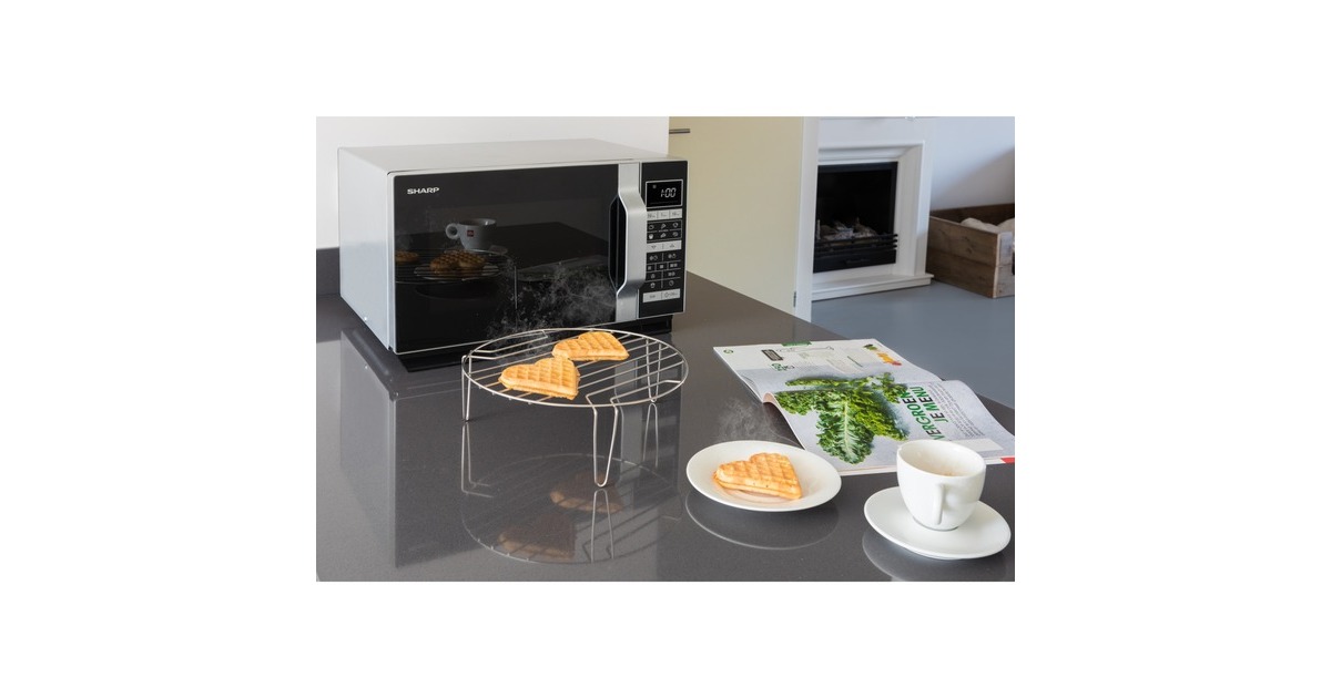 Die Sharp Kombi-Mikrowelle R860S mit Grill- und Heißluftfunktion eignet sich besonders gut zum schnellen Garen von Speisen, die knusprig gebräunt oder überbacken werden sollen. Mit einem 25 Liter Edelstahl-Garraum ist die R860S groß genug für eine Pizza mit 25 cm Durchmesser. 14 verschiedene Gar- und Auftau-Automatikprogramme, inklusive Kuchen- und Pizza Automatikprogramm, sorgen für stets optimale Ergebnisse beim Zubereiten der Speisen. Dank dem flachen Design ohne Drehteller passen sowohl große als auch kleine Schüsseln in die Mikrowelle. Außerdem ist die R860S somit einfach zu reinigen.Art.-Nr.: 1491909