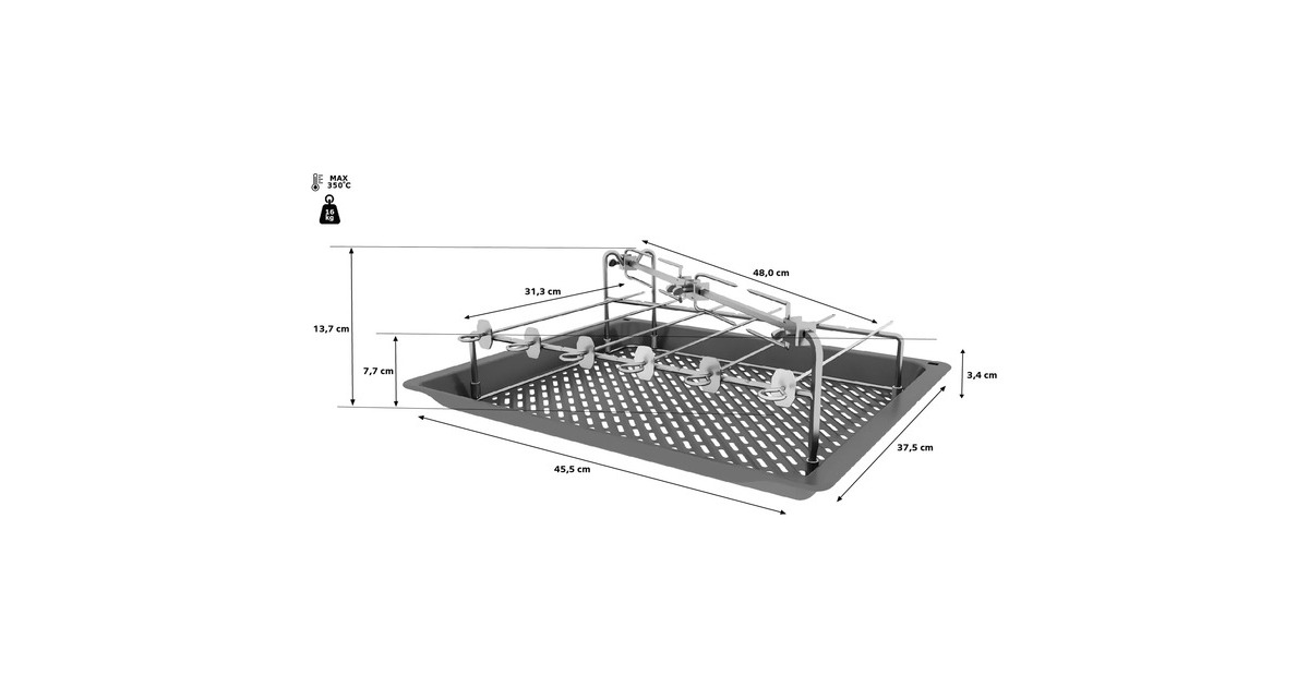 Air Fry-Schale, Halterungen für Bratenspieß und Grillspieße, 6 Spieße, 4 Fleischgabeln |