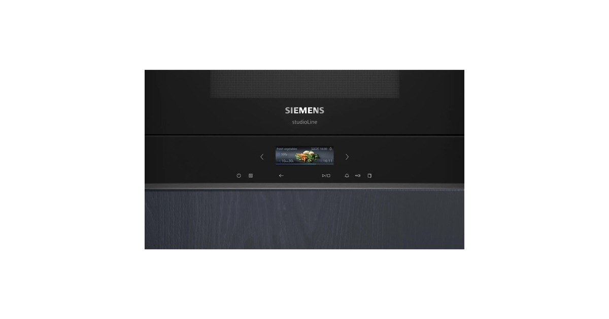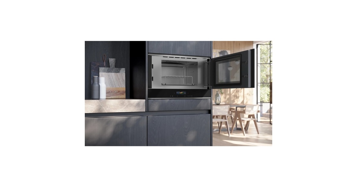 Die Siemens BE732R1B1 IQ700 ist eine elegante, integrierbare Mikrowelle mit Grill in schwarz. Mit einem Garraumvolumen von 21 Litern bietet sie ausreichend Platz für Ihre kulinarischen Kreationen. Das übersichtliche TFT Touchdisplay ermöglicht eine intuitive Bedienung sorgt für eine einfache Einstellung der gewünschten Funktionen. Mit sieben Automatikprogrammen können Sie Ihre Speisen mühelos und präzise zubereiten. Die Mikrowelle verfügt über fünf Leistungsstufen mit einer maximalen Leistung von 900 Watt, sodass Sie Ihre Speisen schnell und effizient erwärmen können. Die integrierte Grillfunktion ermöglicht das gleichmäßige bräunen von Grillgut. Die LED Garraumbeleuchtung sorgt dabei für eine optimale Sichtbarkeit während des Kochvorgangs. Die Selbstreinigungstechnik mit Hydrolyse macht die Reinigung der Mikrowelle zum Kinderspiel. Durch die Starttaste und den Türkontaktschalter wird zudem für Ihre Sicherheit gesorgt. Der seitlich öffnende Öffnungsmechanismus der Tür ermöglicht einen bequemen Zugang zum Garraum und erleichtert das Ein- und Ausladen Ihrer Speisen.Art.-Nr.: 100034849