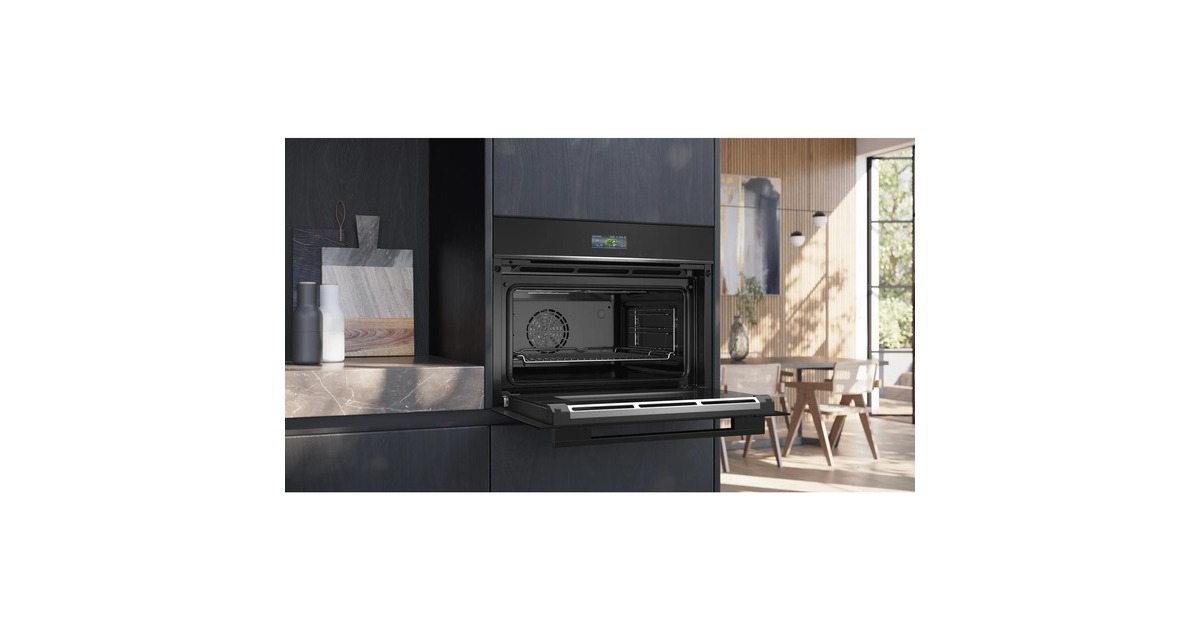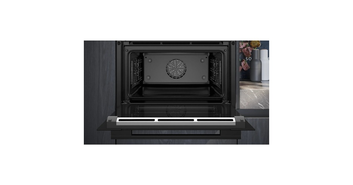 Der Einbau-Kompaktbackofen Siemens CB734G1B1 bietet einen Nutzinhalt von 47 Litern und passt perfekt in kleinere Küchen. Er stellt 11 Heizarten, darunter Heißluft sanft zum energiesparenden Backen und Braten, zur Verfügung. Die touchControl-Bedienung ist in Kombination mit dem TFT-Touchdisplay die einfache und innovative Art, den CB734G1B1 zu bedienen. Über den Backofenassistent mit Sprachsteuerung lässt sich ganz einfach das richtige Programm wählen und in der Home Connect App jederzeit und sofort darauf zugreifen. Das umweltfreundliche Reinigungssystem des CB734G1B1 weicht eingebrannte Rückstände auf, sodass sie sich anschließend viel leichter abwischen lassen – einfach ein Gefäß mit ca. 400 ml Wasser und einem Tropfen Spülmittel in den Garraum stellen und das passende Reinigungsprogramm wählen. Die gedämpfte Backofentür sorgt für ein sanftes und leises Öffnen und Schließen der Tür. In puncto Sicherheit glänzt der CB734G1B1 mit einer Kindersicherung, einer Sicherheitsabschaltung sowie einer Restwärmeanzeige.Art.-Nr.: 100034593