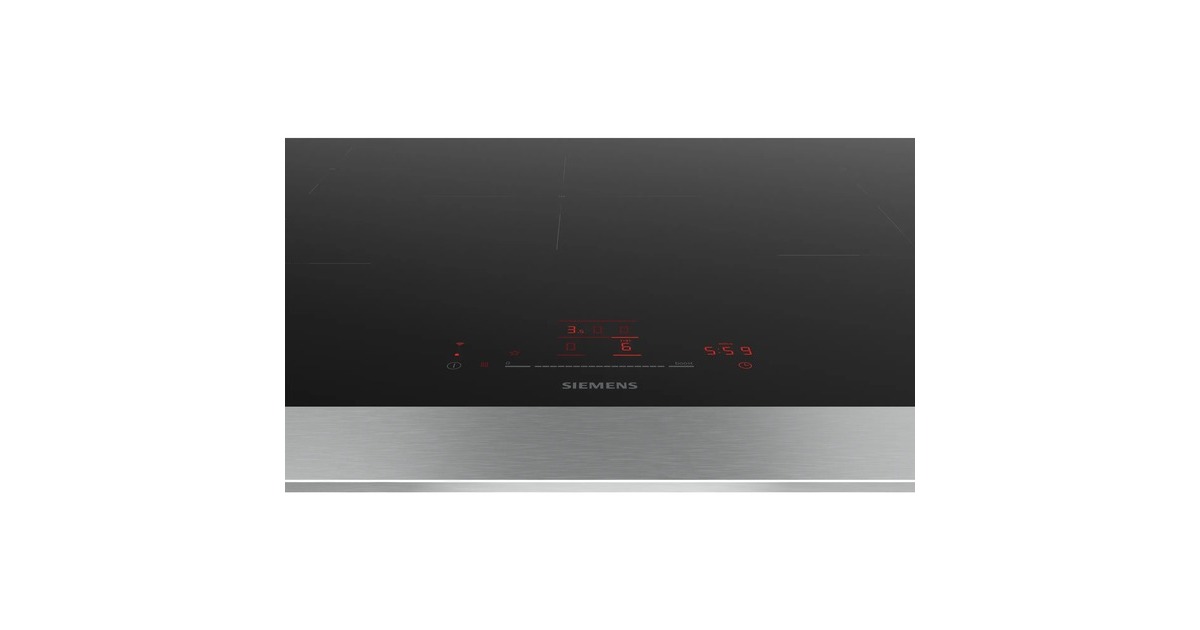 Das autarke Induktionskochfeld EH801HVB1E von Siemens stellt fünf Kochzonen mit 17 Leistungsstufen und PowerBoost-Funktion zum Kochen, Braten und Dünsten zur Verfügung. Die touchSlider-Bedienung ermöglicht die Einstellung der Leistungsstufe mit nur einem Finger. Das EH801HVB1E lässt sich zudem smart via Home Connect App steuern und in Kombination mit einer entsprechenden Dunstabzugshaube passt sich diese automatisch dem Kochfeld an. Mit der Favoriten-Taste kann man das Kochfeld ganz individuell nach den eigenen Wünschen einstellen und sogar sein Smart Home steuern. In puncto Sicherheit überzeugt das EH801HVB1E mit einer Restwärmeanzeige, einer Kindersicherung und einer Sicherheits-Zeitabschaltung.Art.-Nr.: 100035693