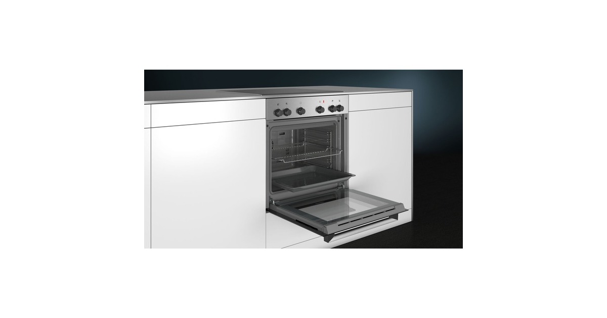 Das Einbau-Herdset Siemens EQ110KA2EE besteht aus dem Herd HE010FBR1 und dem Kochfeld EA64RGNA1E. Der Garraum umfasst 66 Liter und bietet 5 Heizarten zum Kochen, Backen und Garen. Die 3D-Heißluft sorgt für optimale Backergebnisse auf bis zu drei Backblechen dank innovativer Wärmeverteilung und mit der Schnellaufheizung gelangt man schneller zur gewünschten Backtemperatur. Die hochwertige Glanz-Emaille-Beschichtung ermöglicht in Kombination mit der Vollglas-Innentür und den Drehreglern eine leichte und komfortable Reinigung des EQ110KA2EE. Das Glaskeramik Kochfeld mit vier Elektro-Kochzonen bietet dank Zweikreis-Kochzone und zuschaltbarer Bräterzone auch für große Pfannen, Töpfe und Bräter genügend Platz. In puncto Sicherheit lässt das EQ110KA2EE mit Kindersicherung, Restwärmeanzeige, Kühlgebläse und geringer Türtemperatur keine Wünsche offen.Art.-Nr.: 1818937