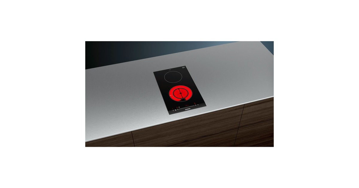 Die 30 cm breite Kochstelle Siemens ET375FFP1E ist kombinierbar mit weiteren Domino- oder Facetten-Design-Kochstellen. Die PowerBoost-Technologie sorgt für schnelleres Ankochen. Dank touchSlider-Bedienung wird die Temperatur durch direktes Antippen oder Entlangstreichen auf der Bedienskala mit nur einem Finger gesteuert. Der Timer mit Abschaltfunktion schaltet die gewählte Kochzone nach Ablauf der gewählten Kochzeit automatisch ab. Das autarke Kochfeld Siemens ET375FFP1E verfügt über zwei HighSpeed-Kochzonen, eine davon ist eine Zweikreis-Kochzone. In puncto Sicherheit glänzt die ET375FFP1E mit einer Kindersicherung und einer automatischen Sicherheitsabschaltung.Art.-Nr.: 1447764