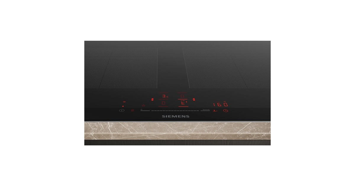 Das autarke Induktionskochfeld EX275HXC1E von Siemens stellt vier Kochzonen mit 17 Leistungsstufen und PowerBoost-Funktion zum Kochen, Braten und Dünsten zur Verfügung. varioInduktion erkennt automatisch die Größe und Form der Töpfe und Pfannen und passt das Kochfeld entsprechend an. Auch ein XL-Bräter findet Platz, denn man kann ganz einfach per Fingertipp zwei Kochzonen zu einer verbinden. Egal, welches Kochgeschirr benutzt wird, Hitze wird nur dort erzeugt, wo sie benötigt wird. Der Bratsensor Pro sorgt dabei für Kochen ohne Anbrenngefahr. Die touchSlider-Bedienung ermöglicht die Einstellung der Leistungsstufe mit nur einem Finger. Das EX275HXC1E lässt sich zudem smart via Home Connect App steuern und in Kombination mit einer entsprechenden Dunstabzugshaube passt sich diese automatisch dem Kochfeld an. Mit der Favoriten-Taste kann man das Kochfeld ganz individuell nach den eigenen Wünschen einstellen und sogar sein Smart Home steuern. In puncto Sicherheit überzeugt das EX275HXC1E mit einer Restwärmeanzeige, einer Kindersicherung und einer Sicherheits-Zeitabschaltung.Art.-Nr.: 100035706