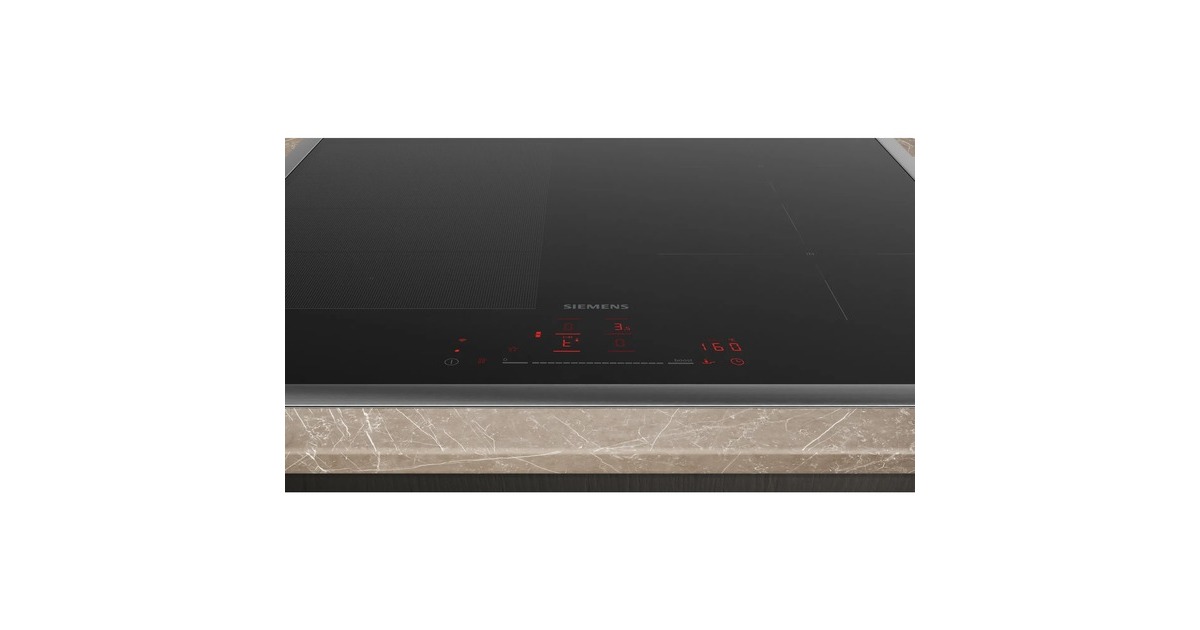 Das autarke Induktionskochfeld EX645HEC1E von Siemens stellt vier Kochzonen mit 17 Leistungsstufen und PowerBoost-Funktion zum Kochen, Braten und Dünsten zur Verfügung. varioInduktion erkennt automatisch die Größe und Form der Töpfe und Pfannen und passt das Kochfeld entsprechend an. Auch ein XL-Bräter findet Platz, denn man kann ganz einfach per Fingertipp die zwei Kochzonen auf der linken Seite zu einer verbinden. Egal, welches Kochgeschirr benutzt wird, Hitze wird nur dort erzeugt, wo sie benötigt wird. Der Bratsensor Pro sorgt dabei für Kochen ohne Anbrenngefahr. Die touchSlider-Bedienung ermöglicht die Einstellung der Leistungsstufe mit nur einem Finger. Das EX645HEC1E lässt sich zudem smart via Home Connect App steuern und in Kombination mit einer entsprechenden Dunstabzugshaube passt sich diese automatisch dem Kochfeld an. Mit der Favoriten-Taste kann man das Kochfeld ganz individuell nach den eigenen Wünschen einstellen und sogar sein Smart Home steuern. In puncto Sicherheit überzeugt das EX645HEC1E mit einer Restwärmeanzeige, einer Kindersicherung und einer Sicherheits-Zeitabschaltung.Art.-Nr.: 100035710