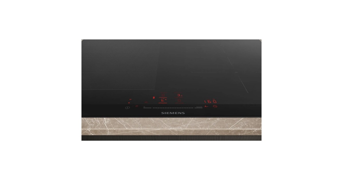 Das autarke Induktionskochfeld EX675HEC1E von Siemens stellt vier Kochzonen mit 17 Leistungsstufen und PowerBoost-Funktion zum Kochen, Braten und Dünsten zur Verfügung. varioInduktion erkennt automatisch die Größe und Form der Töpfe und Pfannen und passt das Kochfeld entsprechend an. Auch ein XL-Bräter findet Platz, denn man kann ganz einfach per Fingertipp die zwei Kochzonen auf der linken Seite zu einer verbinden. Egal, welches Kochgeschirr benutzt wird, Hitze wird nur dort erzeugt, wo sie benötigt wird. Der Bratsensor Pro sorgt dabei für Kochen ohne Anbrenngefahr. Die touchSlider-Bedienung ermöglicht die Einstellung der Leistungsstufe mit nur einem Finger. Das EX675HEC1E lässt sich zudem smart via Home Connect App steuern und in Kombination mit einer entsprechenden Dunstabzugshaube passt sich diese automatisch dem Kochfeld an. Mit der Favoriten-Taste kann man das Kochfeld ganz individuell nach den eigenen Wünschen einstellen und sogar sein Smart Home steuern. In puncto Sicherheit überzeugt das EX675HEC1E mit einer Restwärmeanzeige, einer Kindersicherung und einer Sicherheits-Zeitabschaltung.Art.-Nr.: 100035717