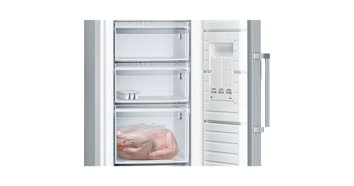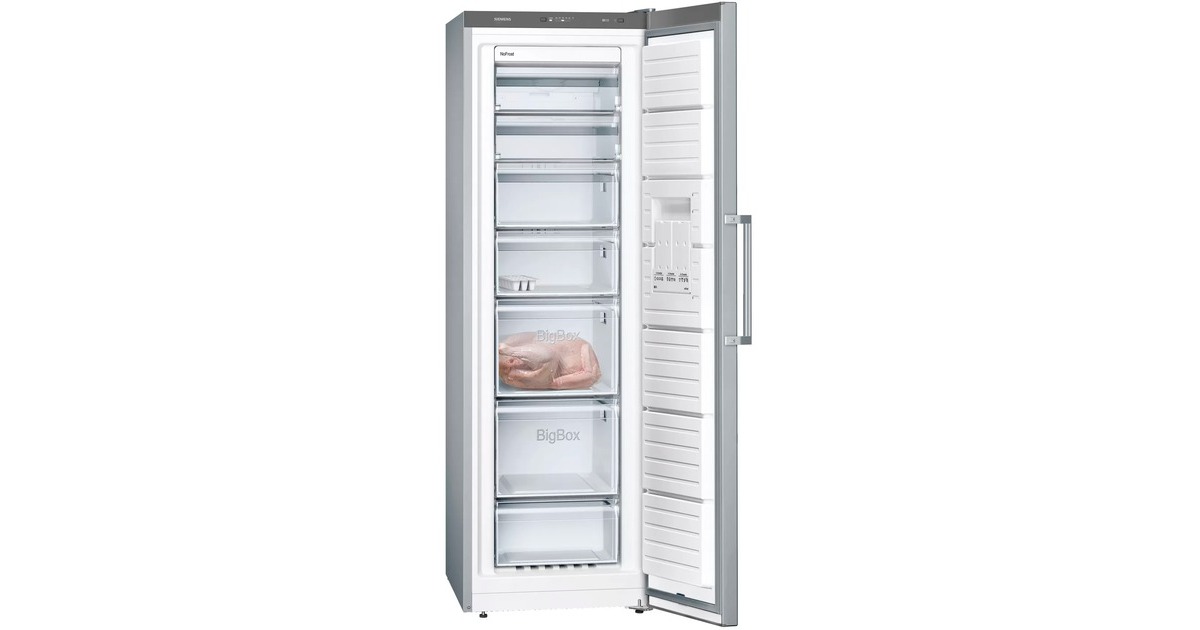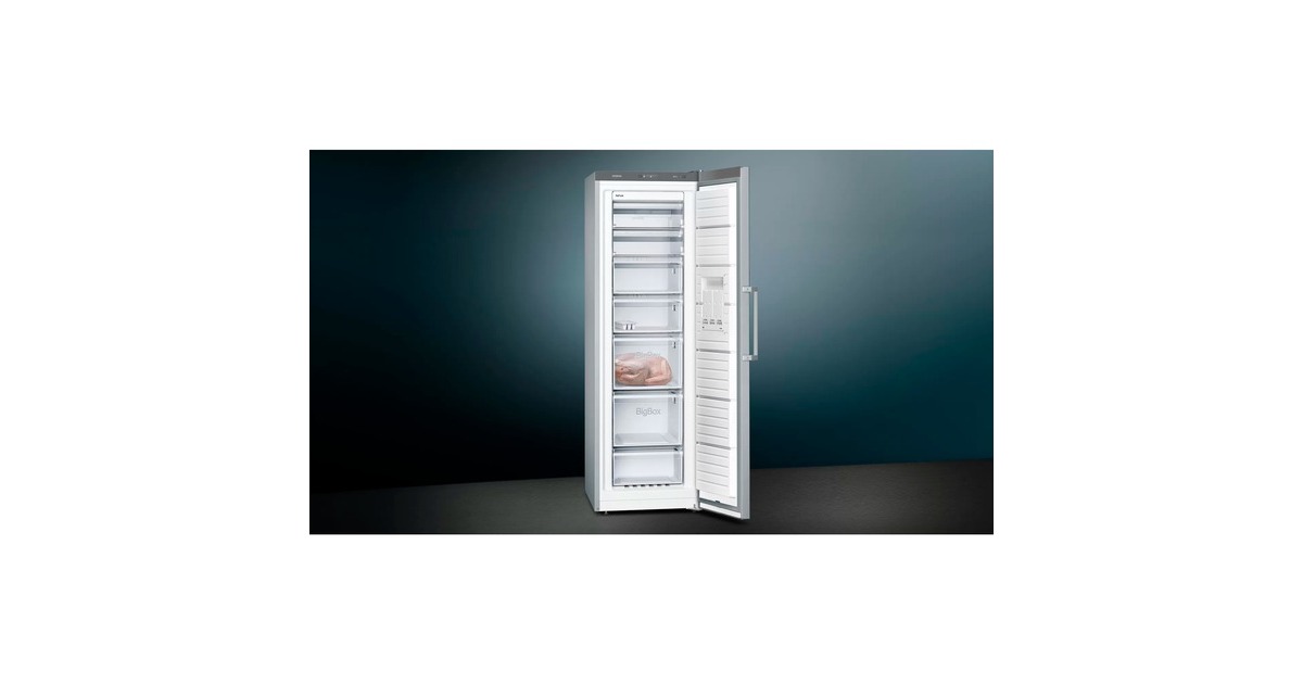 Der Gefrierschrank Siemens GS36NVIFV bietet einen Gesamtnutzinhalt von 242 Litern. Neben zwei Gefrierfächern mit Klappe ist er mit fünf transparenten Gefrierschubladen, davon zwei bigBoxen zum Stapeln von Einfrierbehältern oder für großes Gefriergut, ausgestattet, die dank varioZone einfach herausnehmbar sind und sich flexibel auf die persönlichen Platzansprüche einstellen lassen. Mit der noFrost-Technologie wird mühsames Abtauen überflüssig und das MultiAirflow-System sorgt für optimale und gleichmäßige Kälteverteilung. freshSense ermöglicht eine konstante Temperatur durch intelligente Sensortechnik und die SuperGefrieren-Funktion mit Eingefrierautomatik schützt bereits Gefrorenes beim Einlegen frischer Lebensmittel vor dem Antauen. Mit einem Stromverbrauch von 294 kWh im Jahr ist der GS36NVIFV in die Energieeffizienzklasse F eingestuft.Art.-Nr.: 1667774