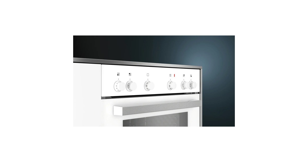Der Einbau-Herd Siemens HE010FBV1 IQ100 überzeugt mit einem Backraumvolumen von 66 Litern, 5 Heizarten und einer Schnellaufheizfunktion. Die 3D-Heißluft sorgt für optimale Backergebnisse auf bis zu drei Backblechen dank innovativer Wärmeverteilung. Der Garraum verfügt über eine hochwertige granit Glanz-Emaille Beschichtung, die für eine leichte Reinigung sorgt. In puncto Sicherheit punktet der HE010FBV1 mit einer sehr geringen Türtemperatur. Art.-Nr.: 100034629