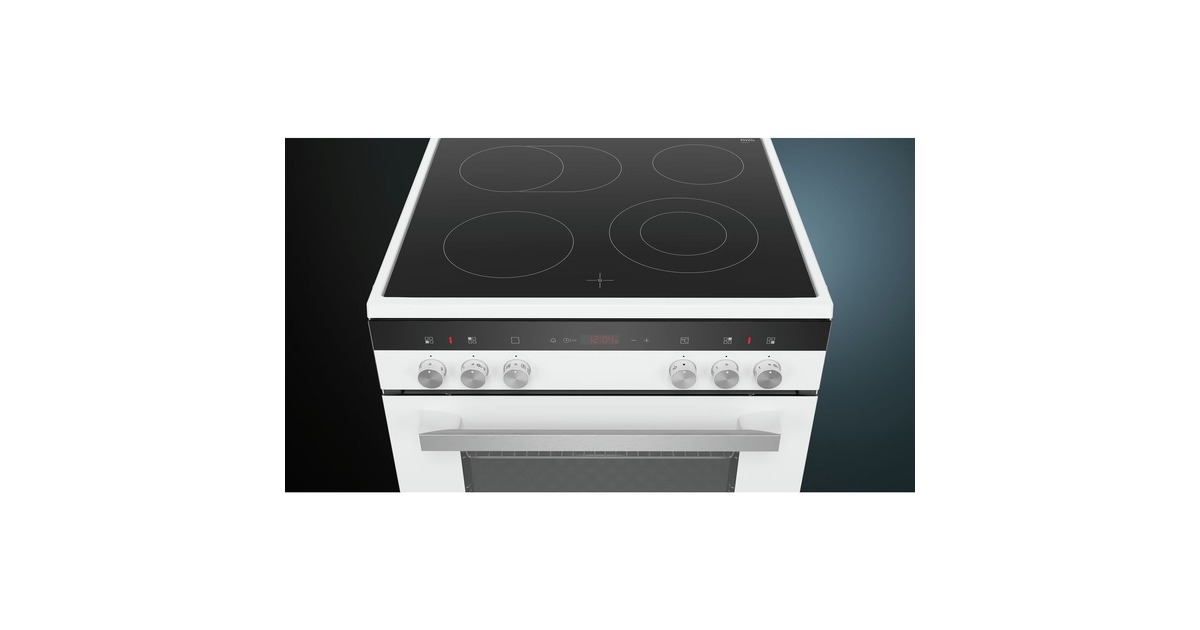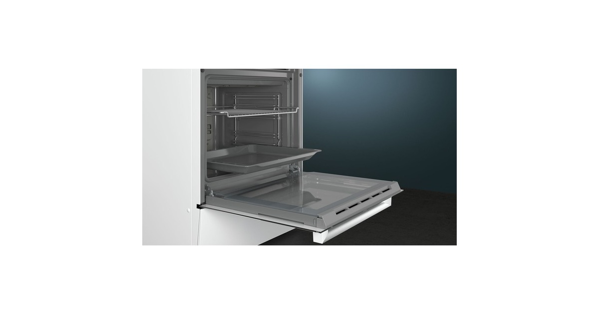 Der Standherd Siemens HK9R3A220 iQ300 ist mit einem Nutzinhalt von 66 Litern optimal für jede Küche geeignet und lässt sich als Standgerät nahezu überall platzieren. Sieben Heizarten bieten Komfort beim Backen und Garen. 3D-Heißluft sorgt für optimale Backergebnisse auf bis zu 3 Backblechen dank innovativer Wärmeverteilung. Mit der Schnellaufheizung wird die gewünschte Backtemperatur schneller erreicht und Ecoclean ermöglicht eine mühelose Reinigung dank spezieller Beschichtung der Rückwand. Das Glaskeramik Kochfeld mit vier highSpeed-Kochzonen bietet dank Zweikreis-Kochzone und zuschaltbarer Bräterzone auch für große Pfannen, Töpfe und Bräter genügend Platz. In puncto Sicherheit lässt der HK9R3A220 mit einer geringen Türtemperatur, Kindersicherung sowie vier Restwärmeanzeigen keine Wünsche offen. Art.-Nr.: 1541965
