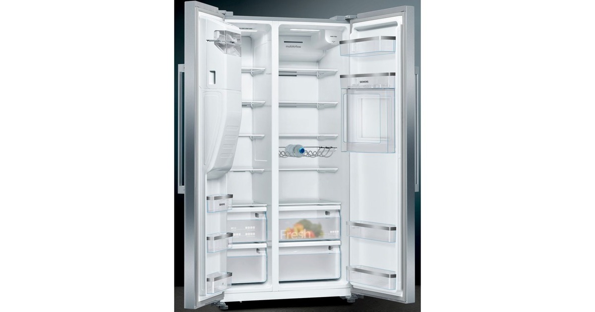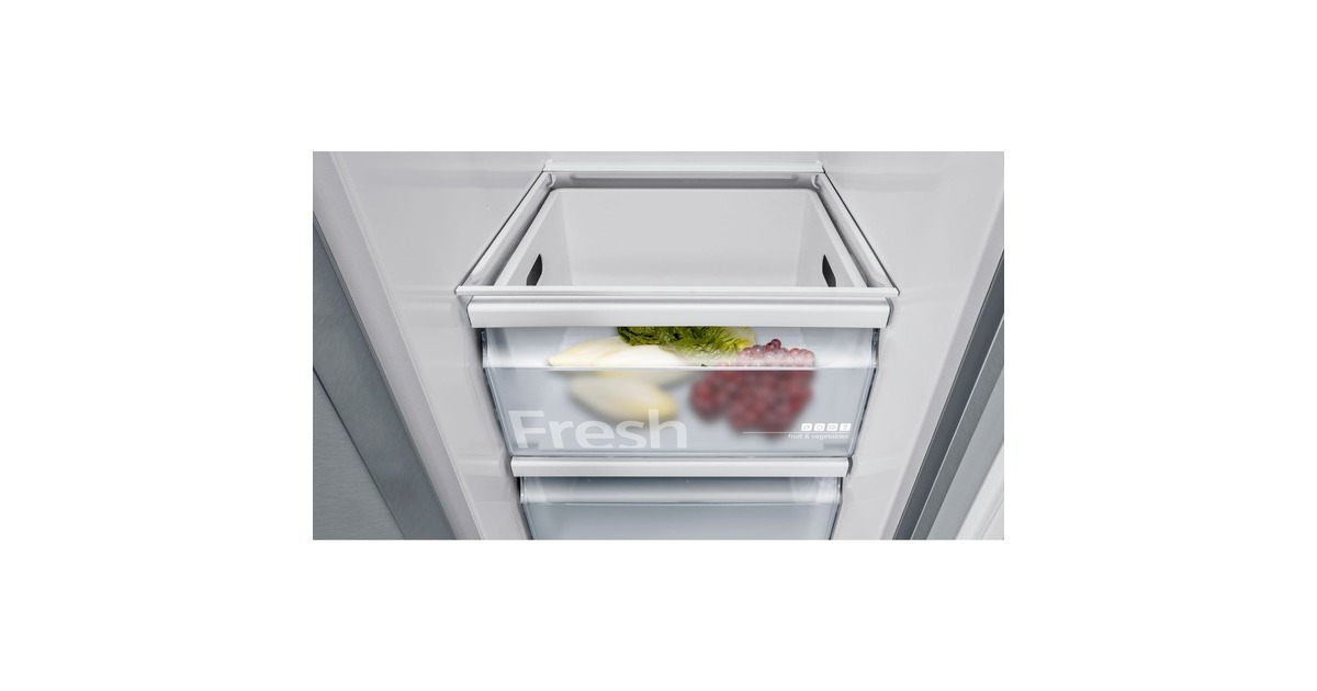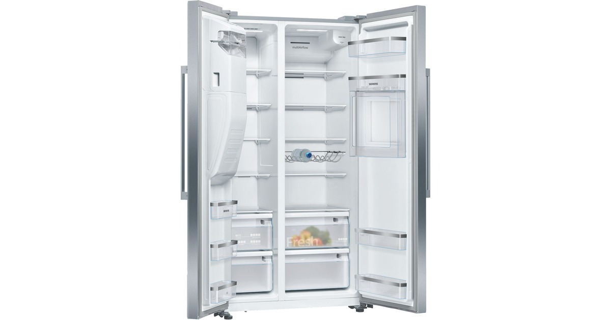 Der Siemens Side-by-Side KA93GAIEP ist mit einem Gesamtnutzinhalt von 560 Litern ideal für den größeren Haushalt geeignet. Das 369 Liter umfassende Kühlteil mit MultiAirflow-System bietet auf fünf Abstellflächen aus Sicherheitsglas, in zwei FreshBoxen auf Rollen sowie in drei Türfächern viel Platz um Lebensmittel übersichtlich zu lagern. Das Gefrierteil des KA93IVIFP umfasst 191 Liter und stellt fünf Glasabstellflächen, zwei transparente Gefrierschubladen sowie fünf Türfächer für Tiefkühlkost zur bereit. NoFrost verhindert zuverlässig die Bildung von Eis an den Geräteinnenseiten oder von Reif auf den Lebensmitteln. Darüber hinaus überzeugt der KA93GAIEP mit den Funktionen SuperKühlen und SuperGefrieren sowie einem automatischen Eiswürfelbereiter.Art.-Nr.: 1667546