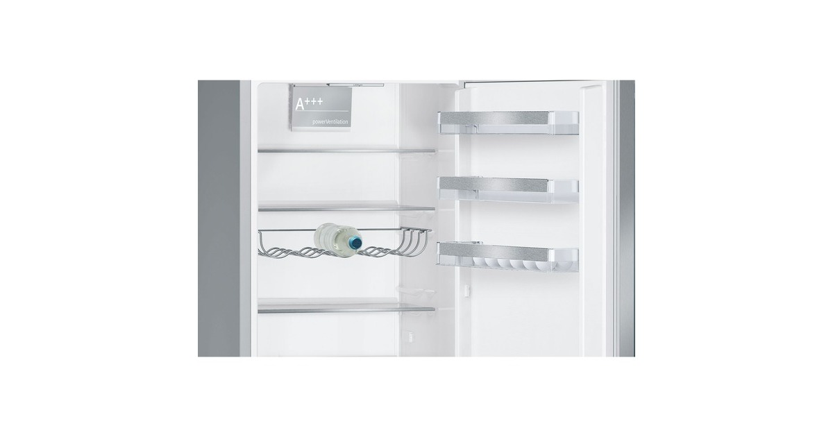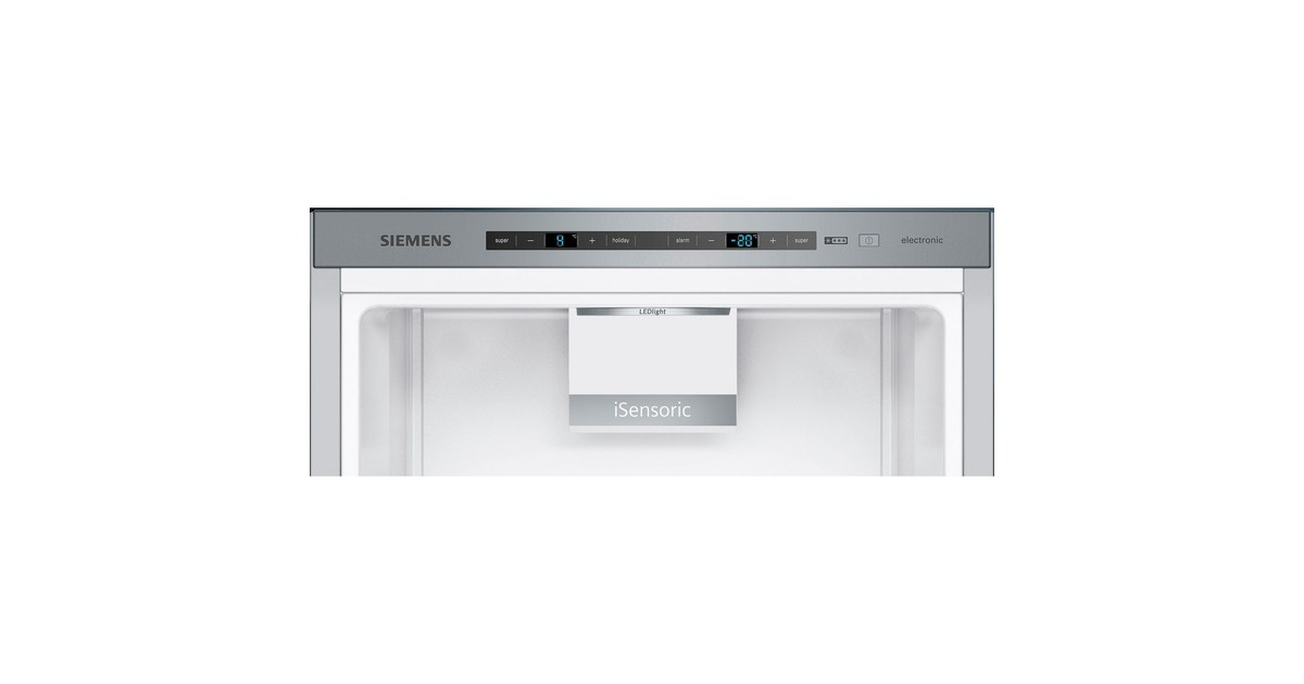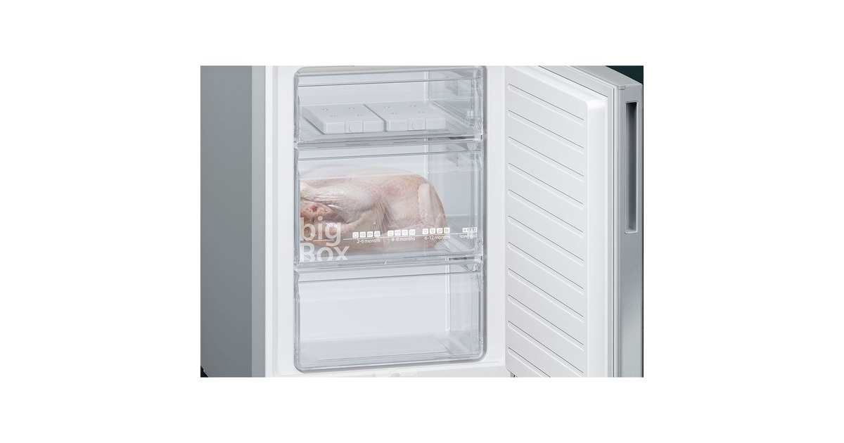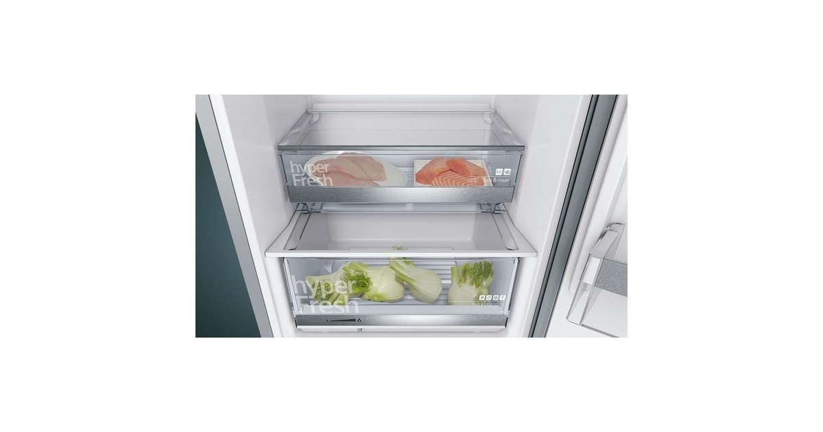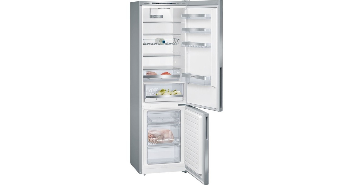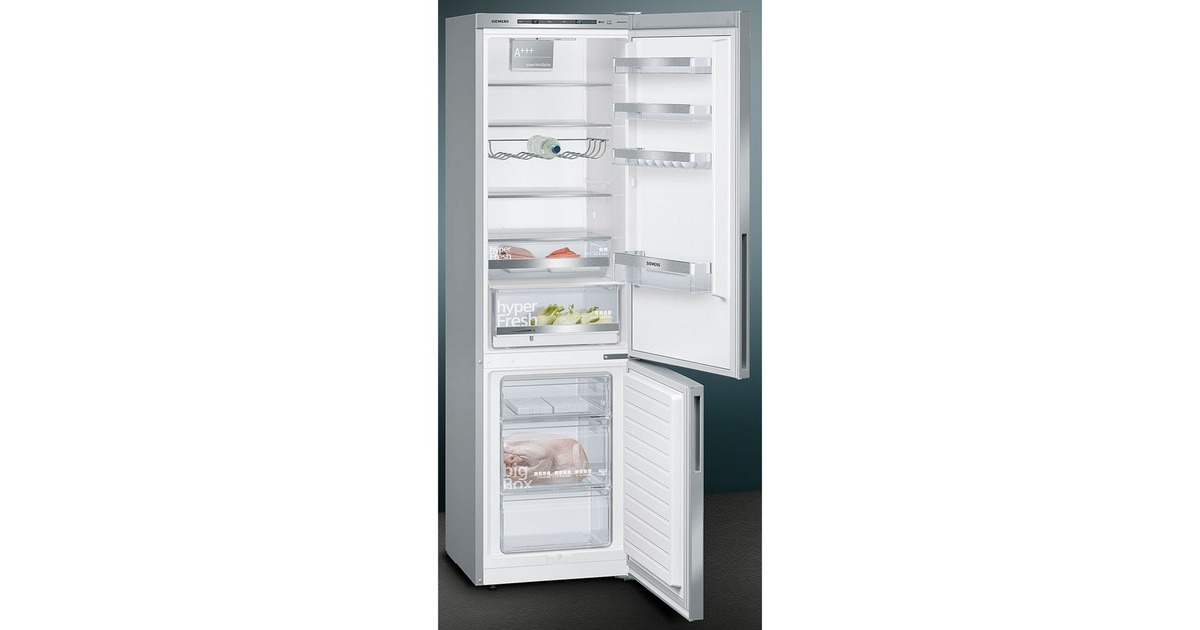 Die Kühl-/Gefrierkombination Siemens KG39EALCA ist mit einem Gesamtnutzinhalt von 343 Litern ideal für den mittelgroßen Haushalt geeignet. Im 249 Liter umfassende Kühlbereich haben frische Lebensmittel auf fünf Abstellflächen aus Sicherheitsglas, davon zwei höhenverstell- und vier ausziehbar, in einer hyperFresh Obst-/Gemüseschublade mit Feuchteregelung und einer hyperFresh 0°C Box für Fisch und Fleisch sowie in vier Türfächern jede Menge Platz um übersichtlich gelagert zu werden. Mit der Taste superCooling werden die Temperaturen im Kühlraum schnell auf +2 °C gesenkt, was beim Einlagern von wärmeren Lebensmitteln in den Kühlraum einen unerwünschten Temperaturanstieg bereits gut gekühlter Speisen verhindert. Der Gefrierbereich der KG39EALCA umfasst 94 Liter und ist mit drei transparenten Gefriergutschubladen, davon eine BigBox, ausgestattet, die dank ViarioZone flexibel ein gesetzt werden können. LowFrost reduziert die Eisbildung, sodass man den Gefrierraum deutlich seltener abtauen muss. Die Temperaturregelung der KG39EALCA erfolgt getrennt für Kühl- und Gefrierbereich und ist digital exakt ablesbar.Art.-Nr.: 1633212