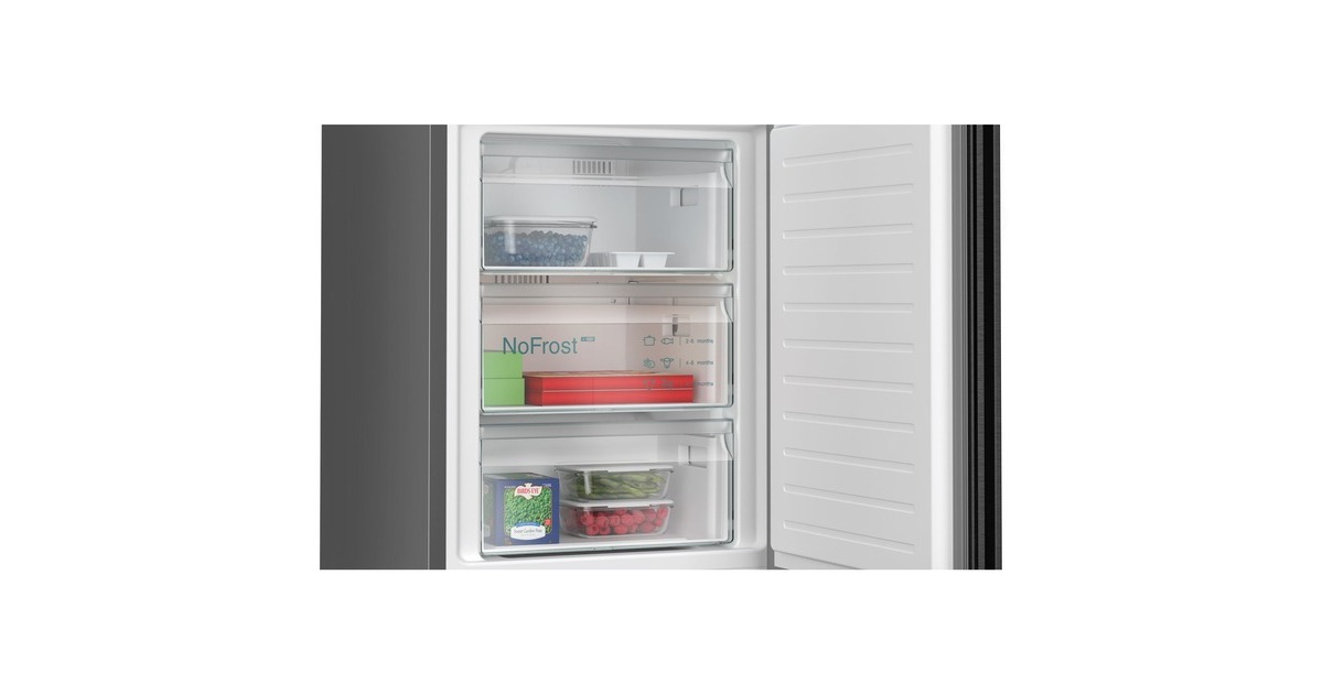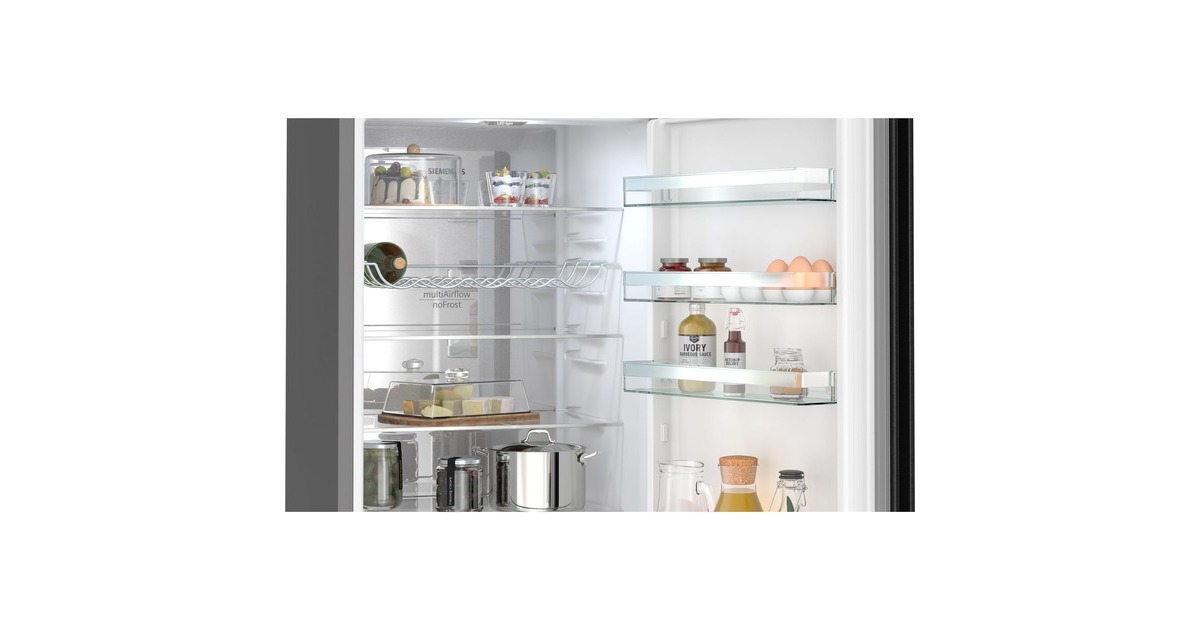 Die Kühl-/Gefrierkombination Siemens KG39N2XAF ist mit einem Gesamtnutzinhalt von 363 Litern ideal für den großen Haushalt geeignet und bietet viel Komfort. Im 260 Liter umfassenden Kühlbereich haben frische Lebensmittel auf fünf Abstellflächen aus Sicherheitsglas, davon drei höhenverstellbar, in einer hyperFresh Box mit Feuchteregelung für Obst und Gemüse und einer hyperFresh 0°C Box für Fisch und Fleisch sowie in vier Türfächern jede Menge Platz. Die superKühlen-Funktion kühlt neu eingelegte Lebensmittel schneller und bietet so Schutz für bereits eingelagerte Speisen. Der Gefrierbereich umfasst 103 Liter und ist mit drei transparenten Gefriergutschubladen ausgestattet und muss dank der noFrost-Technologie gegen Eisbildung nie wieder mühsam abgetaut werden. Die Temperaturregelung der KG39N2XAF erfolgt elektronisch getrennt für jede Temperaturzone und ist über LED ablesbar. Mit einem Stromverbrauch von 104 kWh im Jahr ist die KG39N2XAF in die Energieeffizienzklasse A eingestuft.Art.-Nr.: 100022855
