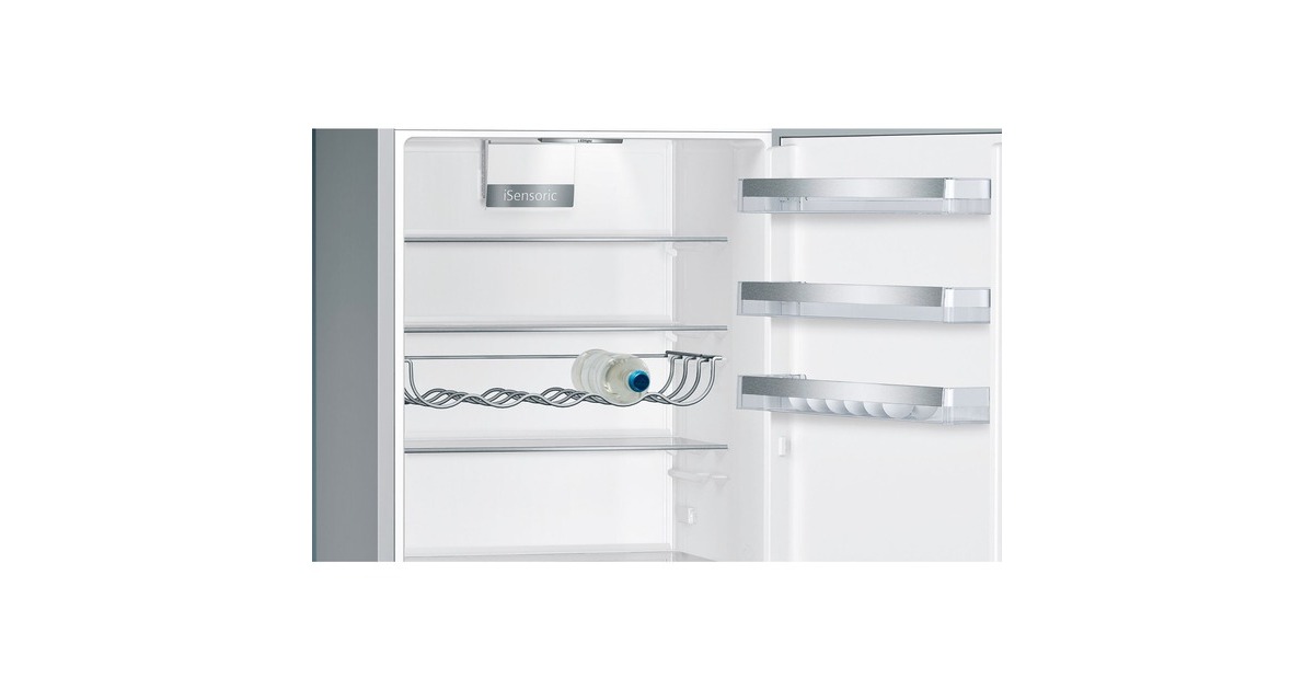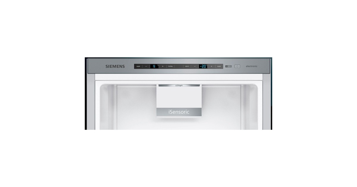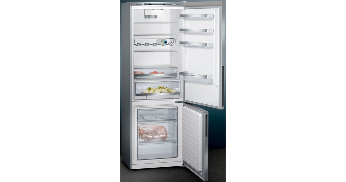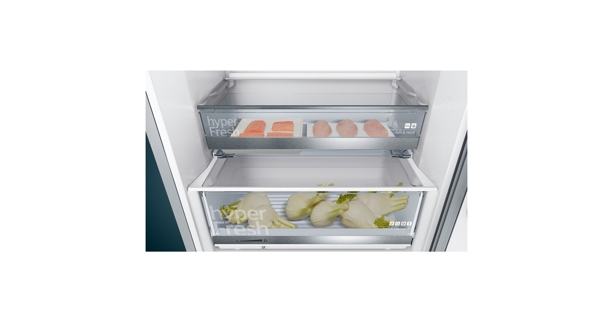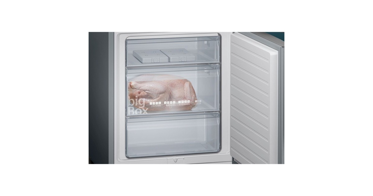 Die Kühl-/Gefrierkombination Siemens KG49EAICA ist mit einem Gesamtnutzinhalt von 419 Litern ideal für den mittelgroßen Haushalt geeignet. Im 302 Liter umfassende Kühlbereich haben frische Lebensmittel auf fünf Abstellflächen aus Sicherheitsglas, davon zwei höhenverstell- und vier ausziehbar, in einer hyperFresh Obst-/Gemüseschublade mit Feuchteregelung und einer hyperFresh 0°C Box für Fisch und Fleisch sowie in vier Türfächern jede Menge Platz um übersichtlich gelagert zu werden. Mit der Taste superCooling werden die Temperaturen im Kühlraum schnell auf +2 °C gesenkt, was beim Einlagern von wärmeren Lebensmitteln in den Kühlraum einen unerwünschten Temperaturanstieg bereits gut gekühlter Speisen verhindert. Der Gefrierbereich der KG49EAICA umfasst 117 Liter und ist mit drei transparenten Gefriergutschubladen, davon eine BigBox, ausgestattet. LowFrost reduziert die Eisbildung, sodass man den Gefrierraum deutlich seltener abtauen muss. Die Temperaturregelung der KG49E4ICA erfolgt getrennt für Kühl- und Gefrierbereich und ist digital exakt ablesbar.Art.-Nr.: 1690773