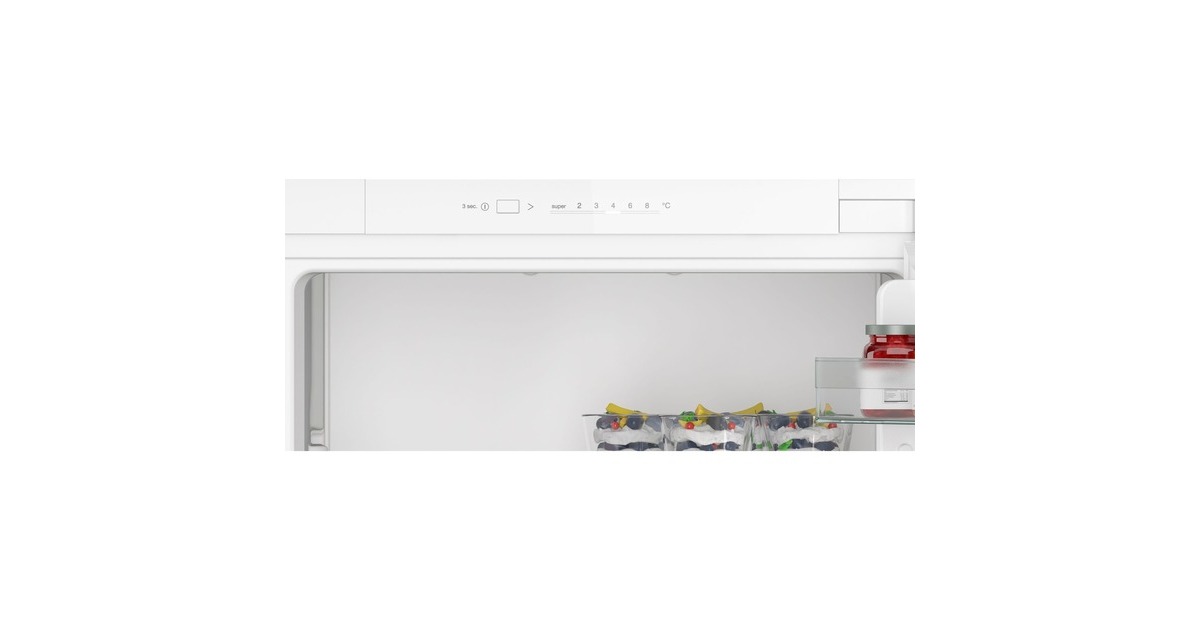 Der Vollraumkühlschrank Siemens KI21RNSE0 bietet einen Gesamtnutzinhalt von 136 Litern und lässt sich perfekt in Nischen mit einer Höhe von 880 mm integrieren. Ausgestattet ist er mit fünf Abstellflächen aus Sicherheitsglas, davon vier höhenverstellbar, einer Obst-/Gemüseschublade mit Wellenboden sowie vier Türfächern. Das autoAirflow-System verteilt die Luft gleichmäßig im Innenraum und sorgt damit für eine konstante Temperatur auf allen Ebenen. Mit der SuperKühlen-Funktion wird die Temperatur für eine eingestellte Zeit gesenkt, sodass beim Einlagern wärmerer Lebensmittel ein unerwünschter Temperaturanstieg bereits gekühlter Speisen verhindert wird. Mit einem Stromverbrauch von 92 kWh im Jahr ist der KI21RNSE0 in die Energieeffizienzklasse E eingestuft.Art.-Nr.: 1907533