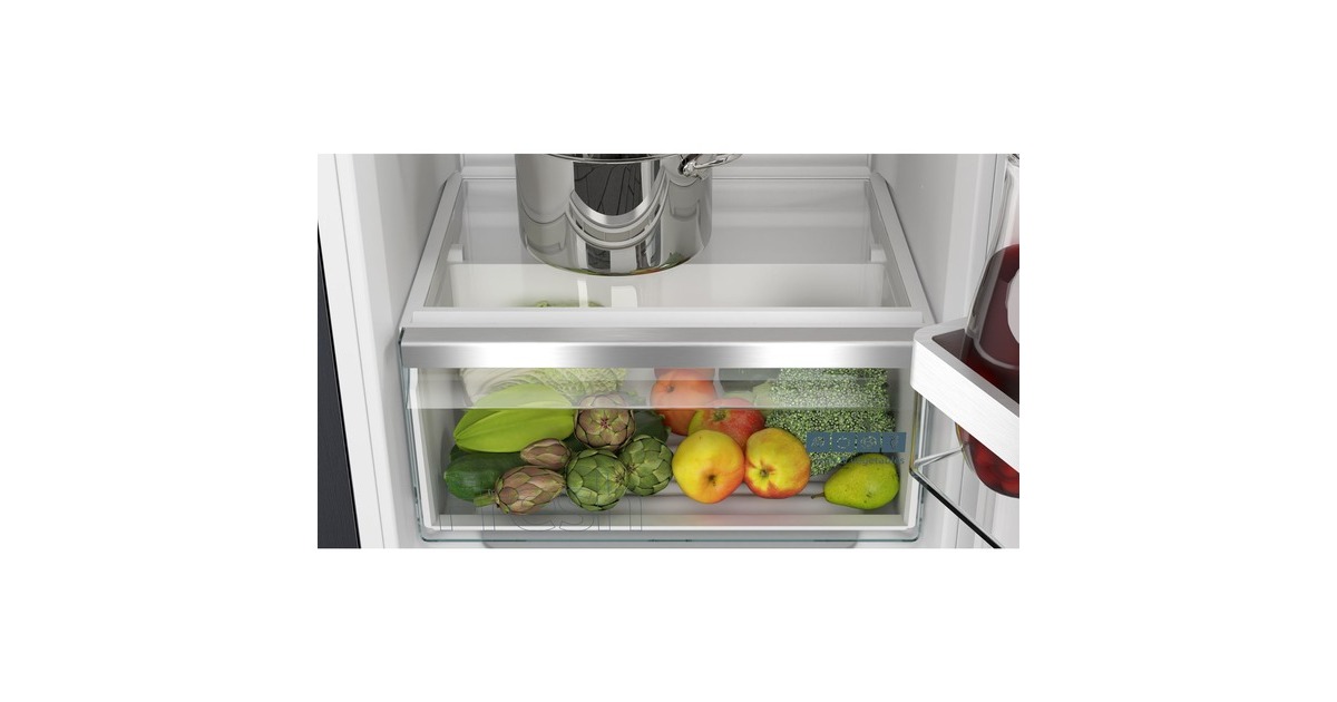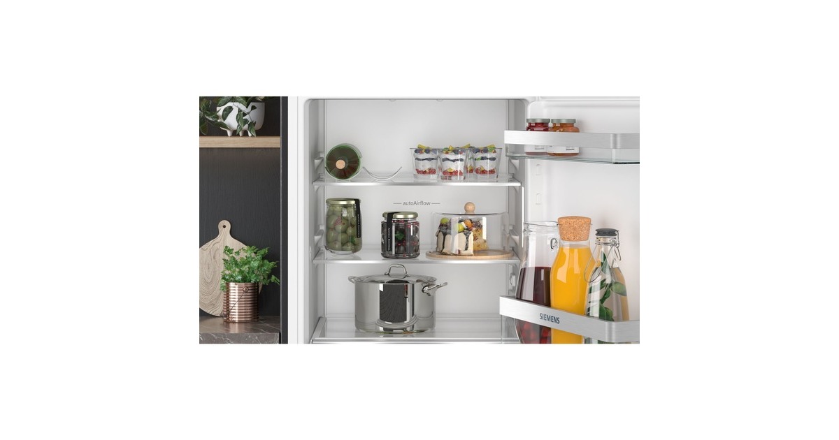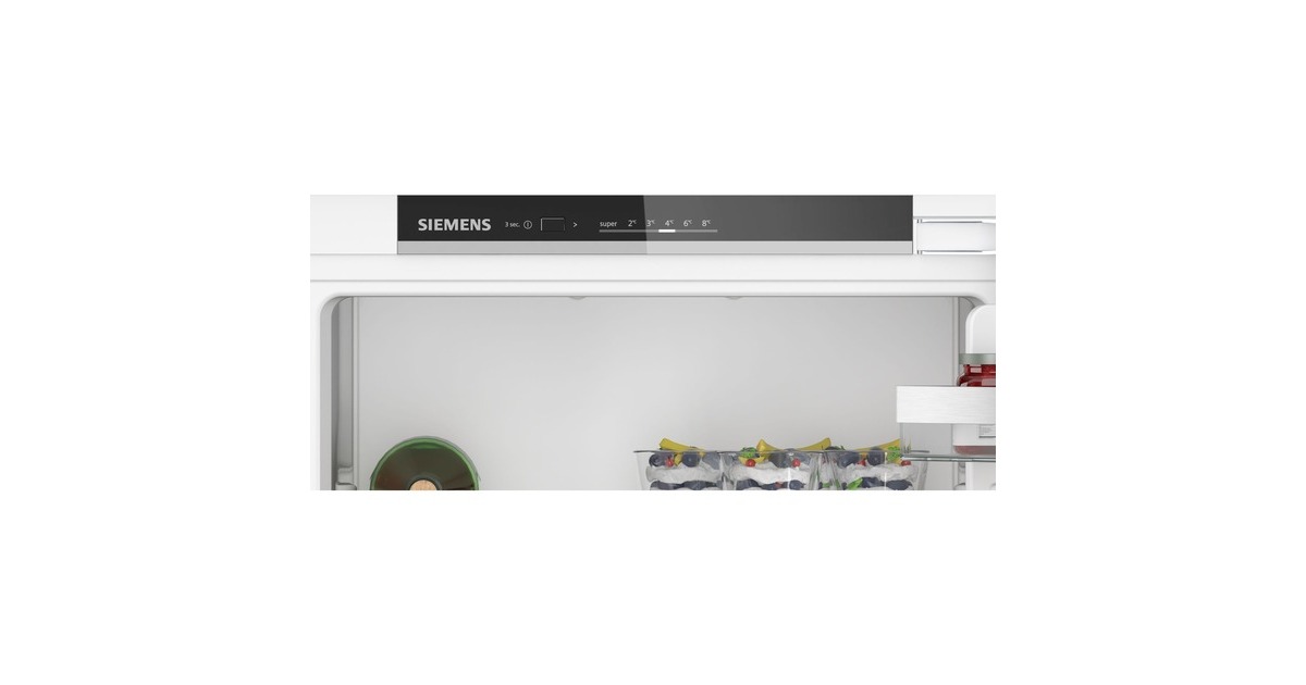 Der Vollraumkühlschrank Siemens KI21RVFE0 bietet einen Gesamtnutzinhalt von 136 Litern und lässt sich perfekt in Nischen mit einer Höhe von 880 mm integrieren. Ausgestattet ist er mit drei Abstellflächen aus Sicherheitsglas, davon zwei höhenverstellbar, einer Obst-/Gemüseschublade mit Wellenboden sowie zwei Türfächern. Das autoAirflow-System verteilt die Luft gleichmäßig im Innenraum und sorgt damit für eine konstante Temperatur auf allen Ebenen. Mit der SuperKühlen-Funktion wird die Temperatur für eine eingestellte Zeit gesenkt, sodass beim Einlagern wärmerer Lebensmittel ein unerwünschter Temperaturanstieg bereits gekühlter Speisen verhindert wird. Mit einem Stromverbrauch von 92 kWh im Jahr ist der KI21RVFE0 in die Energieeffizienzklasse E eingestuft.Art.-Nr.: 1871585