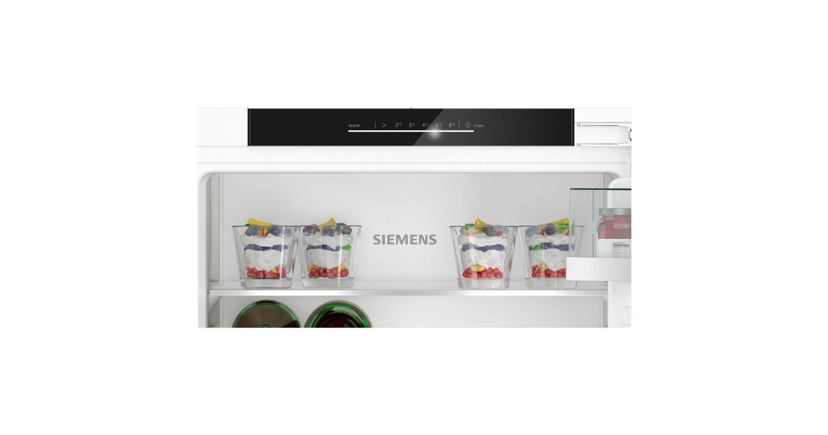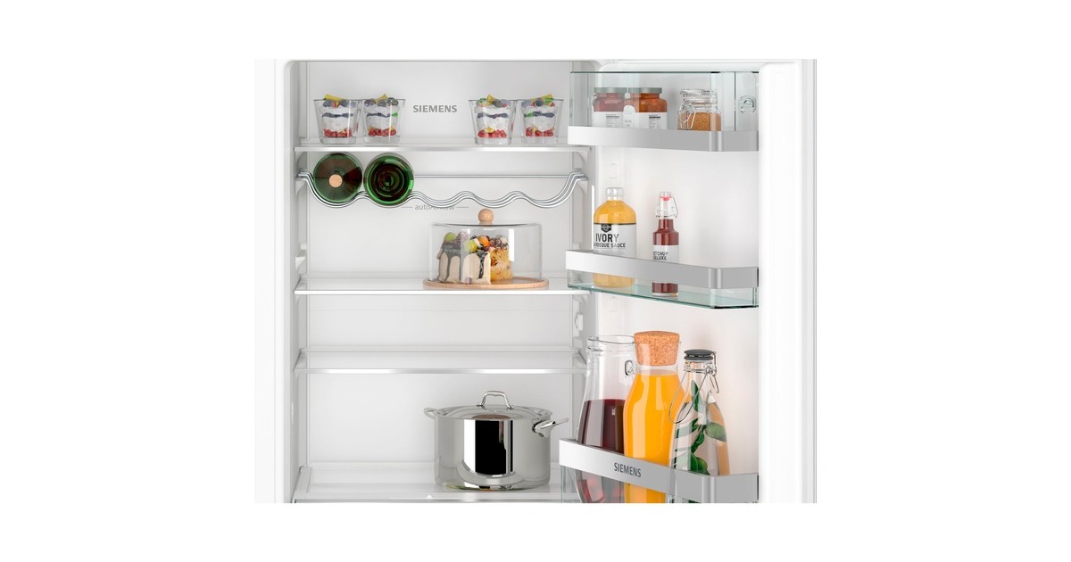 Der Vollraumkühlschrank Siemens KI31RADD1 bietet einen Gesamtnutzinhalt von 165 Litern und lässt sich perfekt in die Küchenzeile integrieren. Ausgestattet ist er mit vier Abstellflächen aus Sicherheitsglas, davon drei höhenverstellbar, drei Türfächern, davon ein Butter-/Käsefach, sowie einer hyperFresh Box mit Feuchtigkeitsregulierung, die Obst und Gemüse länger frisch und knackig hält. Das autoAirflow-System verteilt die Luft im Kühlschrank gleichmäßig und sorgt damit für eine konstante Temperatur auf allen Ebenen und mit der SuperKühlen-Funktion wird die Temperatur für eine eingestellte Zeit gesenkt, um beim Einlagern wärmerer Lebensmittel einen unerwünschter Temperaturanstieg bereits gekühlter Speisen zu verhindern. Dank der softClosing-Tür ist der KI31RADD1 stets ordnungsgemäß und vollständig geschlossen, da die Tür automatisch und sanft schließt, wenn der Öffnungswinkel nur noch 20° beträgt. Mit einem Stromverbrauch von 77 kWh im Jahr ist der KI31RADD1 in die Energieeffizienzklasse D eingestuft.Art.-Nr.: 1907531