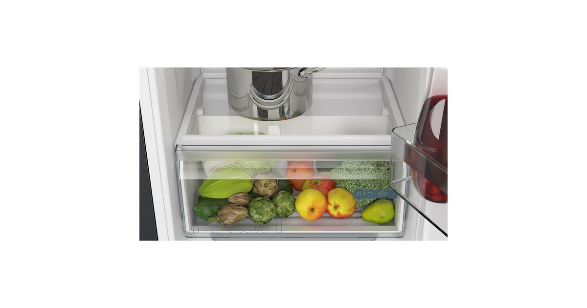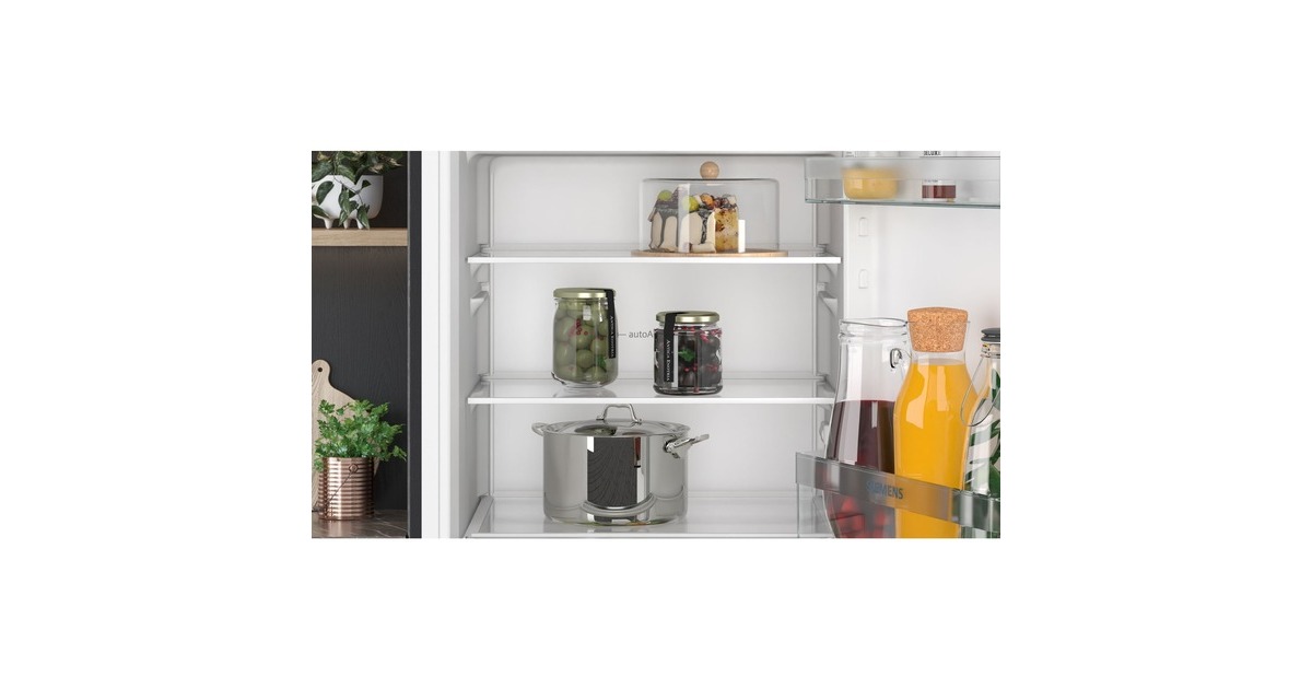 Der Kühlschrank Siemens KI32LNSE0 bietet einen Gesamtnutzinhalt von 147 Litern und lässt sich perfekt in Nischen mit einer Höhe von 1025 mm integrieren. Ausgestattet ist er mit drei Abstellflächen aus Sicherheitsglas, davon zwei höhenverstellbar, einer Obst-/Gemüseschublade mit Wellenboden sowie drei Türfächern. Das autoAirflow-System verteilt die Luft gleichmäßig im Innenraum und sorgt damit für eine konstante Temperatur auf allen Ebenen. Mit der SuperKühlen-Funktion wird die Temperatur für eine eingestellte Zeit gesenkt, sodass beim Einlagern wärmerer Lebensmittel ein unerwünschter Temperaturanstieg bereits gekühlter Speisen verhindert wird. Das 4-Sterne-Gefrierfach mit Klappe bietet einen Nutzinhalt von 15 Litern und friert innerhalb von 24 Stunden bis zu 3 Kilogramm an Lebensmitteln ein. Mit einem Stromverbrauch von 145 kWh im Jahr ist der KI32LNSE0 in die Energieeffizienzklasse E eingestuft.Art.-Nr.: 1871577