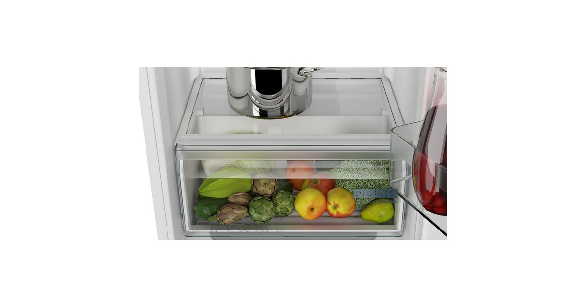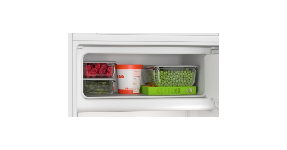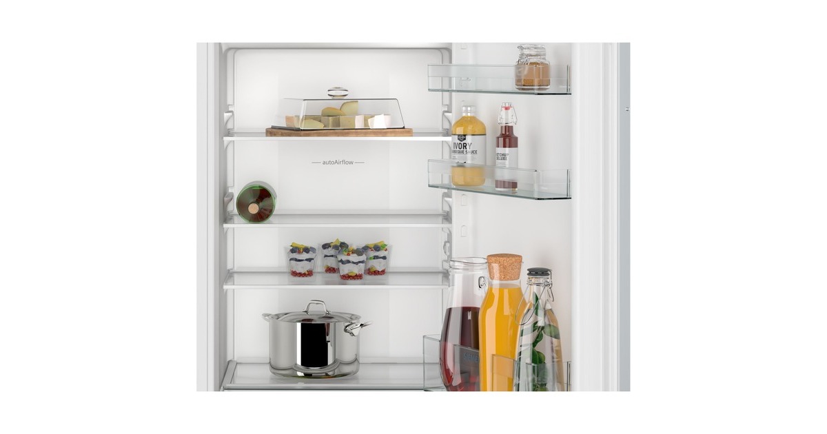 Der Kühlschrank Siemens KI32LNSE0 bietet einen Gesamtnutzinhalt von 187 Litern und lässt sich perfekt in Nischen mit einer Höhe von 1225 mm integrieren. Ausgestattet ist er mit vier Abstellflächen aus Sicherheitsglas, davon drei höhenverstellbar, einer Obst-/Gemüseschublade mit Wellenboden sowie vier Türfächern. Das autoAirflow-System verteilt die Luft gleichmäßig im Innenraum und sorgt damit für eine konstante Temperatur auf allen Ebenen. Mit der SuperKühlen-Funktion wird die Temperatur für eine eingestellte Zeit gesenkt, sodass beim Einlagern wärmerer Lebensmittel ein unerwünschter Temperaturanstieg bereits gekühlter Speisen verhindert wird. Das 4-Sterne-Gefrierfach mit Klappe bietet einen Nutzinhalt von 15 Litern und friert innerhalb von 24 Stunden bis zu 3 Kilogramm an Lebensmitteln ein. Mit einem Stromverbrauch von 147 kWh im Jahr ist der KI32LNSE0 in die Energieeffizienzklasse E eingestuft.Art.-Nr.: 1871570