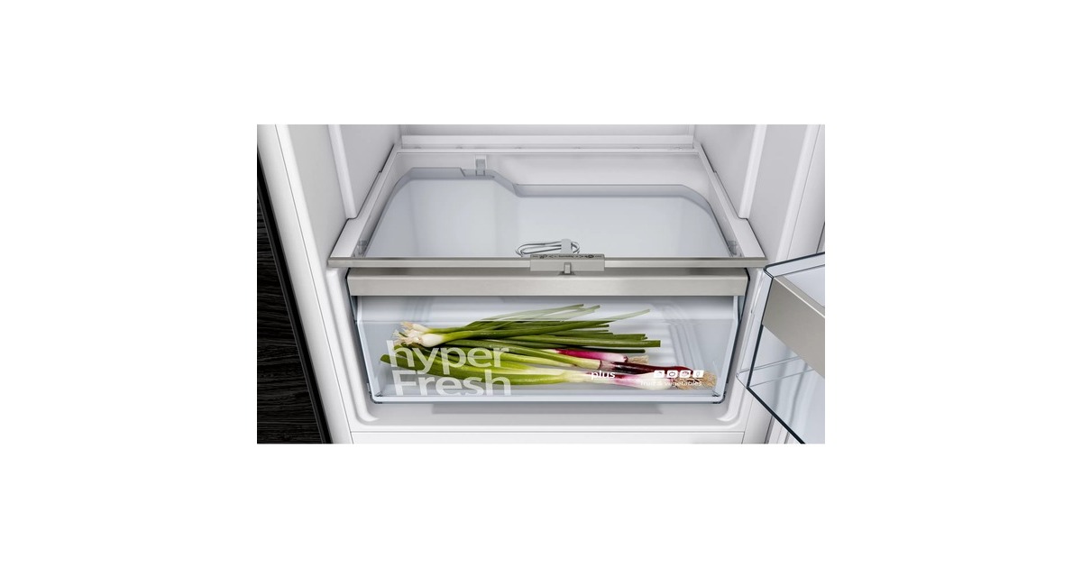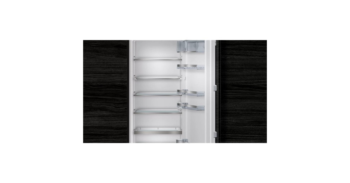 Der vollintegrierbare Kühlschrank Siemens KI51RADE0 stellt einen Gesamtnutzinhalt von 247 zur übersichtlichen Lagerung frischer Lebensmittel zur Verfügung. Ausgestattet ist er mit sechs Abstellflächen aus Sicherheitsglas, davon fünf höhenverstellbar und eine ausziehbar, fünf Türfächern, davon ein Butter-/Käsefach, sowie einer hyperFresh plus Box, die Obst und Gemüse bis zu zweimal länger frisch und knackig hält. Die intelligente Sensortechnik FreshSense sorgt im gesamten Kühlraum für eine konstante Temperatur und dank der softClosing-Tür ist der KI51RADE0 stets ordnungsgemäß und vollständig geschlossen. Mit der SuperKühlen-Funktion wird die Temperatur für eine eingestellte Zeit gesenkt, sodass beim Einlagern wärmerer Lebensmittel ein unerwünschter Temperaturanstieg bereits gekühlter Speisen verhindert wird.Art.-Nr.: 1665773
