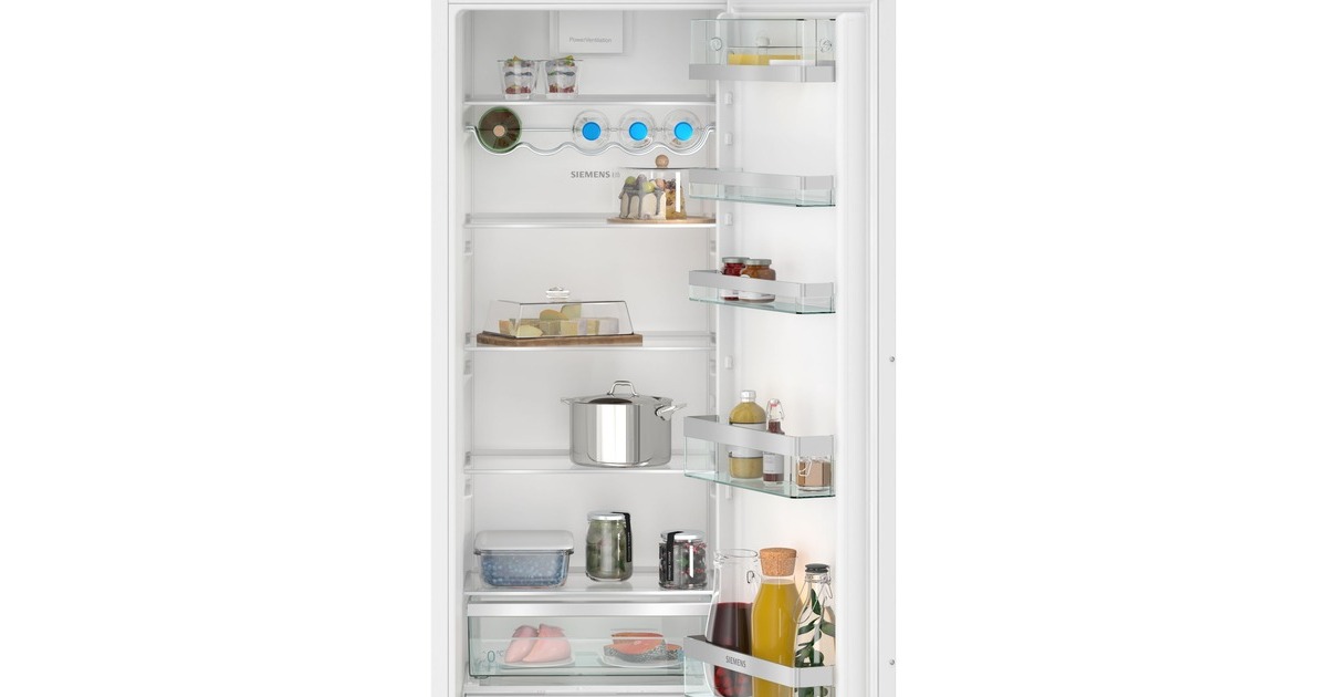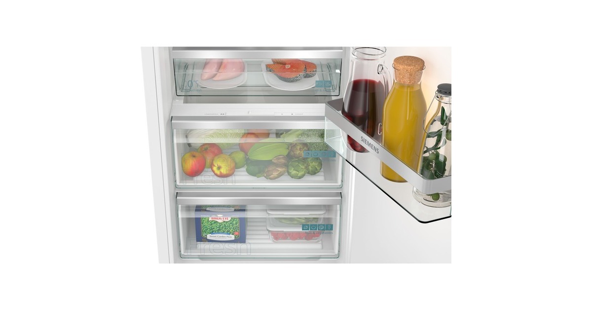 Der Vollraumkühlschrank Siemens KI81RADD0 bietet einen Gesamtnutzinhalt von 204 Litern und lässt sich perfekt in die Küchenzeile integrieren. Ausgestattet ist er mit sieben Abstellflächen aus Sicherheitsglas, davon vier höhenverstellbar, zwei Obst-/Gemüseschubladen, eine hyperFresh 0°C Schublade für Fisch und Fleisch sowie fünf Türfächern. Mit der SuperKühlen-Funktion wird die Temperatur für eine eingestellte Zeit gesenkt, um beim Einlagern wärmerer Lebensmittel einen unerwünschter Temperaturanstieg bereits gekühlter Speisen zu verhindern. Dank der softClosing-Tür ist der KI81RADD0 stets ordnungsgemäß und vollständig geschlossen, da die Tür automatisch und sanft schließt, wenn der Öffnungswinkel nur noch 20° beträgt. Mit einem Stromverbrauch von 91 kWh im Jahr ist der KI81RADD0 in die Energieeffizienzklasse D eingestuft.Art.-Nr.: 100022858