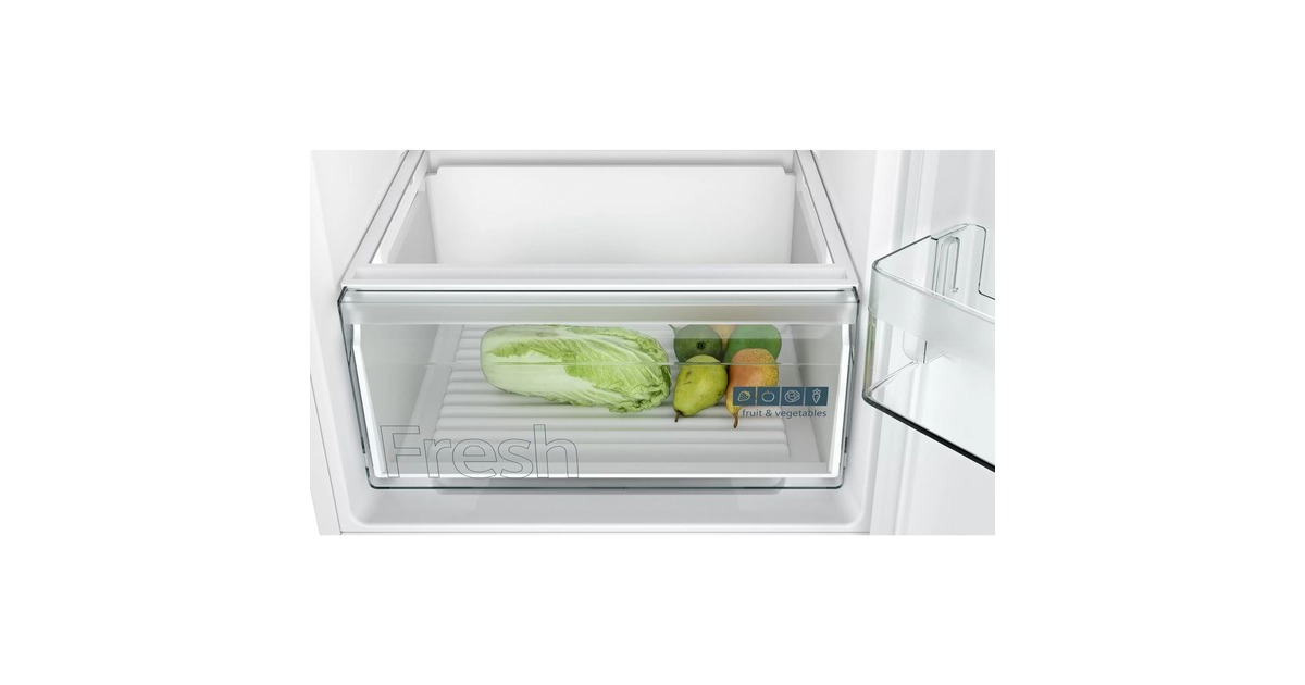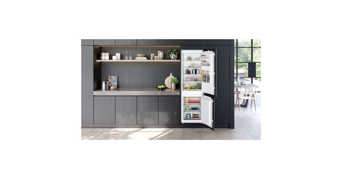 Der Siemens KI86NNFE0 iQ100 ist eine hochwertige Einbau-Kühl-/Gefrierkombination mit Energieeffizienzklasse E. Sie hat einen jährlichen Energieverbrauch von 234 kWh und einen Gesamtnutzinhalt von 260 Litern. Der Kühlbereich umfasst 184 Liter und das Gefrierfach 76 Liter. Es gibt vier höhenverstellbare Abstellflächen aus Sicherheitsglas, eine Obst-/Gemüseschublade, drei transparente Schubladen im Gefrierfach sowie Türfächer und eine Eierablage. Die Temperatur kann über die LED-Anzeige eingestellt werden und Funktionen wie Supergefrieren und Superkühlen sind vorhanden. Die LED-Beleuchtung sorgt für eine helle Ausleuchtung und die NoFrost-Technologie verhindert lästiges Abtauen.Art.-Nr.: 100034352