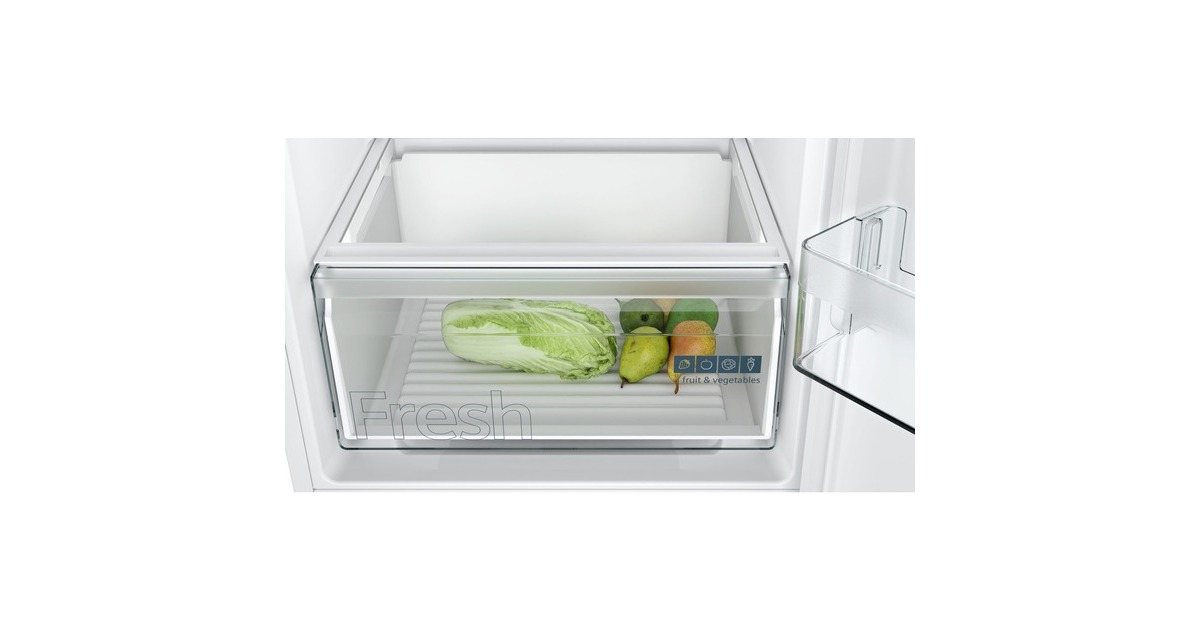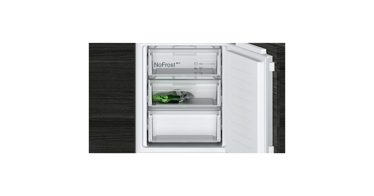 Die vollintegrierbare Kühl-/Gefrierkombination Siemens KI86NNFF0 stellt einen Gesamtnutzinhalt von 260 Litern zur übersichtlichen Lagerung frischer Lebensmittel zur Verfügung und bietet viel Komfort. Der 184 Liter fassende Kühlraum ist mit vier Abstellflächen aus Sicherheitsglas, davon drei höhenverstellbar, einer Obst-/Gemüseschublade sowie drei Türfächern ausgestattet. Der Gefrierbereich der KI86NNFF0 umfasst 76 Liter und stellt drei transparente Gefriergutschubladen zur Verfügung. Die NoFrost-Technologie verhindert die Eisbildung im Gefrierteil, wodurch es nie wieder mühsam abgetaut werden muss. Mit einem Stromverbrauch von 293 kWh im Jahr ist die KI86NNFF0 in die Energieeffizienzklasse F eingestuft.Art.-Nr.: 1774354
