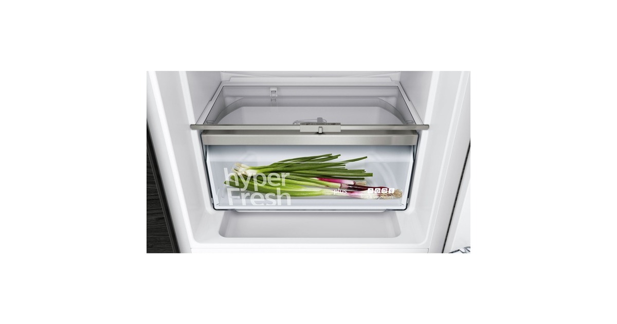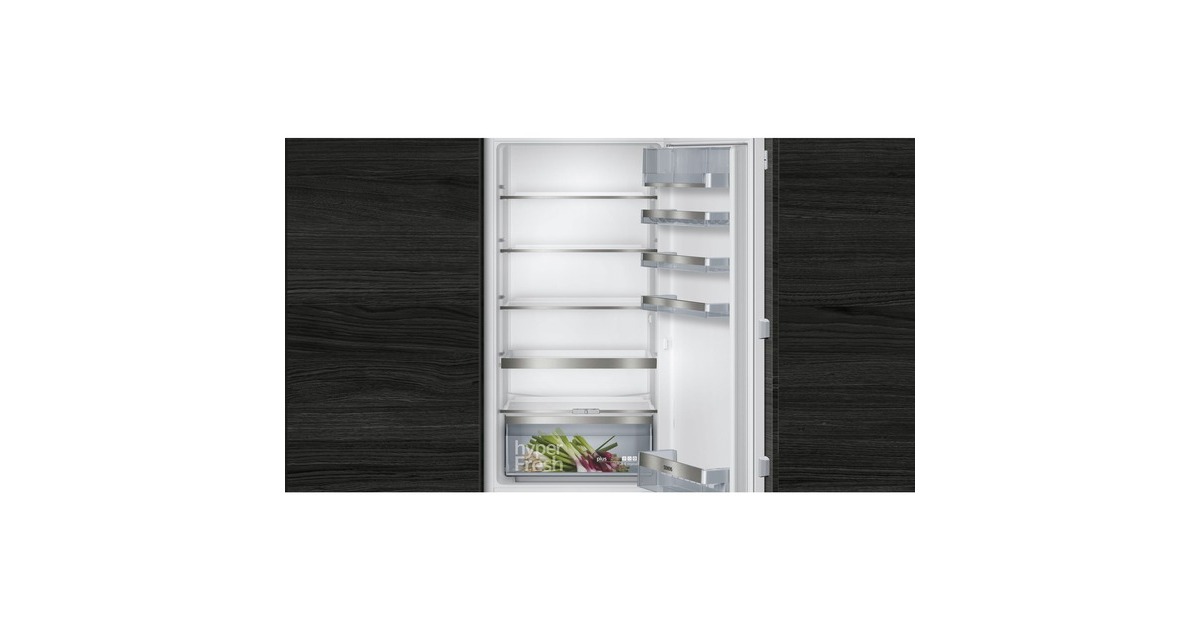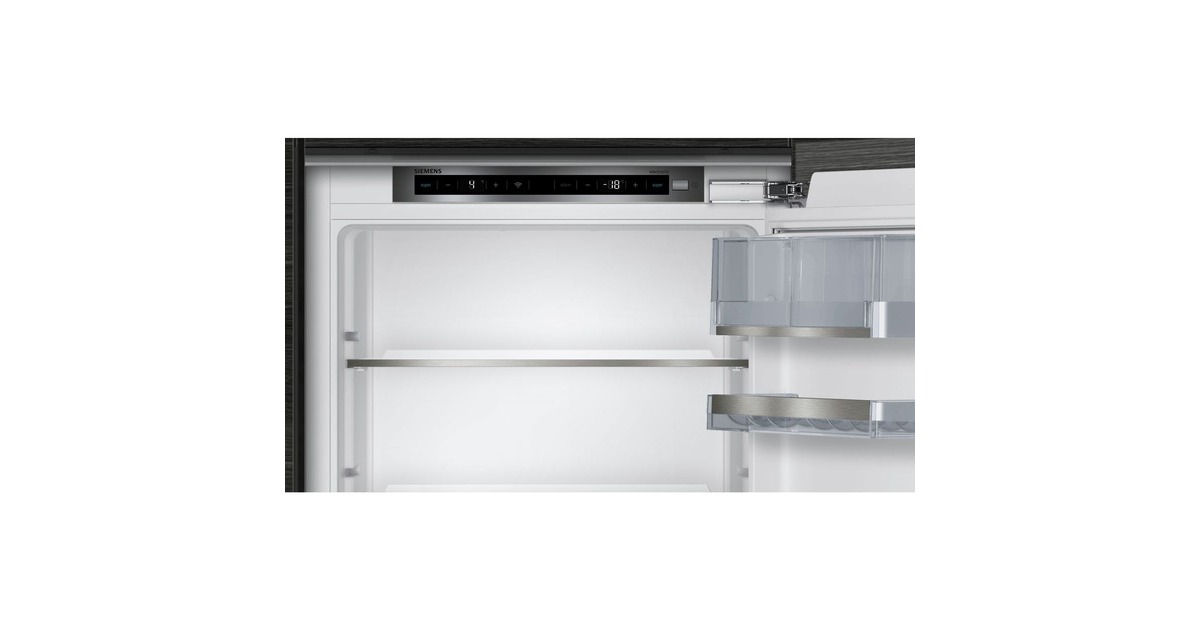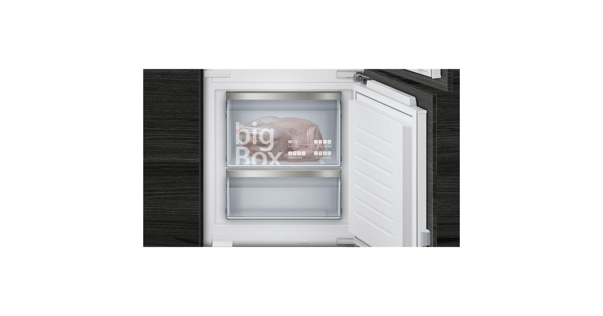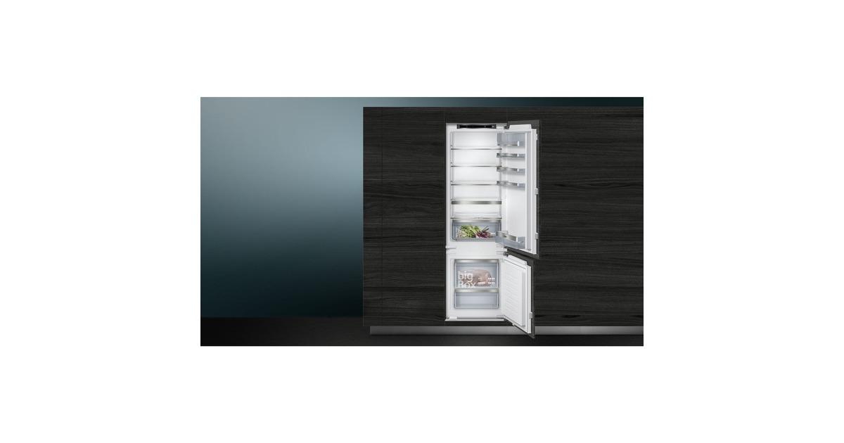 Die vollintegrierbare Kühl-/Gefrierkombination Siemens KI87SADE0 stellt einen Gesamtnutzinhalt von 272 Litern zur übersichtlichen Lagerung frischer Lebensmittel zur Verfügung und bietet viel Komfort. Der 209 Liter fassende Kühlraum ist mit fünf Abstellflächen aus Sicherheitsglas, davon vier höhenverstell- und eine ausziehbar, sowie fünf Türfächern, davon ein Butter-/Käsefach, ausgestattet. Die hyperFresh plus Box mit Feuchteregelung hält Obst und Gemüse bis zu zweimal länger frisch. Mit der SuperKühlen-Funktion wird die Temperatur im Kühlraum für eine eingestellte Zeit gesenkt, sodass beim Einlagern wärmerer Lebensmittel ein unerwünschter Temperaturanstieg bereits gekühlter Speisen verhindert wird. Der flexibel nutzbare Gefrierbereich der KI87SADE0 umfasst 63 Liter und stellt zwei transparente Gefriergutschubladen zur Verfügung, davon eine bigBox um großes Gefriergut optimal zu lagern und zu stapeln. Die geringere Eisbildung durch die LowFrost-Technologie spart Energie und Arbeit beim Abtauen und die intelligente Sensortechnik FreshSense sorgt im gesamten Kühlschrank für eine konstante Temperatur. Dank softClosing schließt die Tür automatisch und sanft, wenn der Öffnungswinkel maximal 20° beträgt. Mit einem Stromverbrauch von 207 kWh im Jahr ist die KI87SADE0 in die Energieeffizienzklasse E eingestuft.Art.-Nr.: 1665723