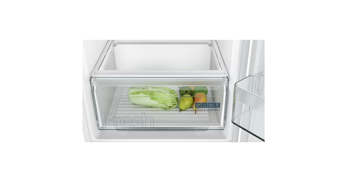 Die Siemens KI87VNSE0 iQ100 ist eine Einbau-Kühl-/Gefrierkombination mit Energieeffizienzklasse E. Sie hat einen jährlichen Energieverbrauch von 216 kWh und einen Nutzinhalt von insgesamt 270 Litern. Das Kühlfach bietet 200 Liter Platz, das Gefrierfach 70 Liter. Es gibt fünf höhenverstellbare Abstellflächen aus Sicherheitsglas und eine Obst-/Gemüseschublade. Zwei transparente Gefrierschubladen und vier Türfächer sorgen für zusätzlichen Stauraum. Die Kühlung erfolgt effizient dank LowFrost-Kältetechnologie und die autoAirflow-Funktion sorgt für optimale Luftzirkulation. Zusätzliche Funktionen wie Supergefrieren, Superkühlen und ein Warnsignal bei offener Tür machen das Gerät benutzerfreundlich.Art.-Nr.: 100034361