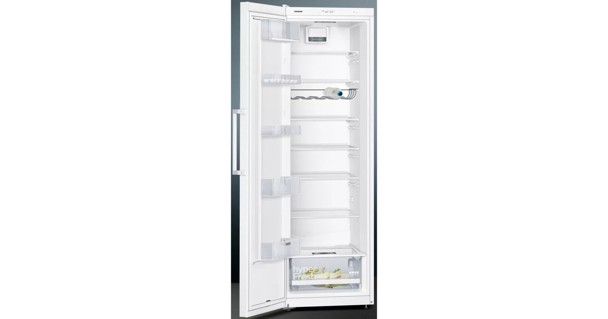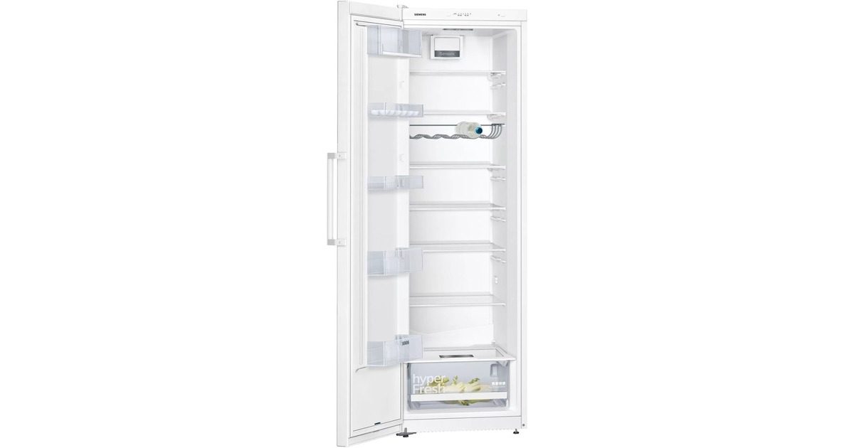 Der Kühlschrank Siemens KS36VVWEP stellt einen großzügigen Gesamtnutzinhalt von 346 Litern zur übersichtlichen Lagerung frischer Lebensmittel zur Verfügung. Ausgestattet ist er mit sieben Abstellflächen aus Sicherheitsglas, davon fünf höhenverstell- und sechs ausziehbar, sowie einem verchromten Flaschenrost und fünf Türfächern, davon ein Butter-/Käsefach. In der hyperFresh Box mit Feuchteregelung bleibt Obst und Gemüse länger frisch und knackig. Die intelligente Sensortechnik FreshSense sorgt im gesamten Kühlraum für eine konstante Temperatur und mit der SuperKühlen-Funktion wird die Temperatur für eine eingestellte Zeit gesenkt, sodass beim Einlagern wärmerer Lebensmittel ein unerwünschter Temperaturanstieg bereits gekühlter Speisen verhindert wird. Mit einem Stromverbrauch von 116 kWh im Jahr ist der KS36VVWEP in die Energieeffizienzklasse E eingestuft.Art.-Nr.: 1665889