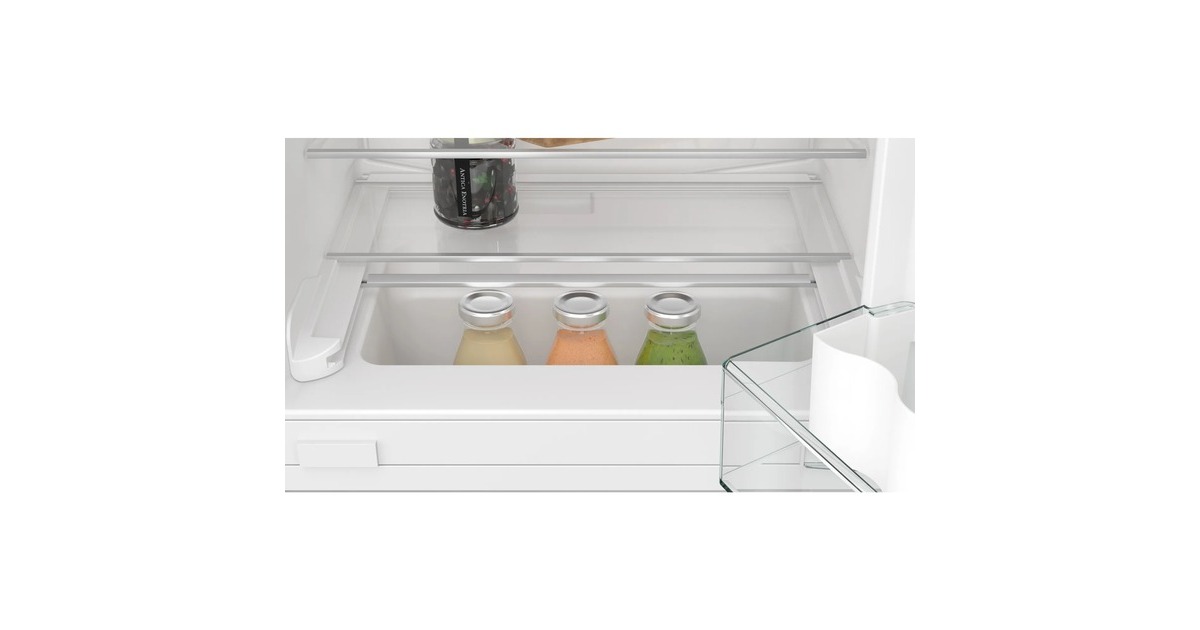 Der Siemens KU22LVFD0 iQ300 ist ein vollintegrierbarer Unterbaukühlschrank mit Energieeffizienzklasse D und einem jährlichen Verbrauch von 119 kWh. Der Nutzinhalt beträgt insgesamt 110 Liter, davon 93 im Kühl- und 17 im Gefrierfach. Es gibt zwei Glasabstellflächen, ein Bodenfach für Flaschen und ein pizzagerechtes Gefrierfach. Der Kühlschrank ist Home Connect kompatibel, hat eine LED-Anzeige zur Temperaturregelung sowie Superkühl- und Energiesparfunktionen. Die dimLight-Funktion sorgt für eine angenehme Atmosphäre in der Küche. Der Gefrierteil muss manuell abgetaut werden, während der Kühlteil automatisch abtaut. Das Gefriervermögen beträgt 3 kg pro Tag bei einer Lagerzeit bei Störung von 9 Stunden. Ein zuverlässiger und effizienter Kühlschrank mit modernen Funktionen.Art.-Nr.: 100034329