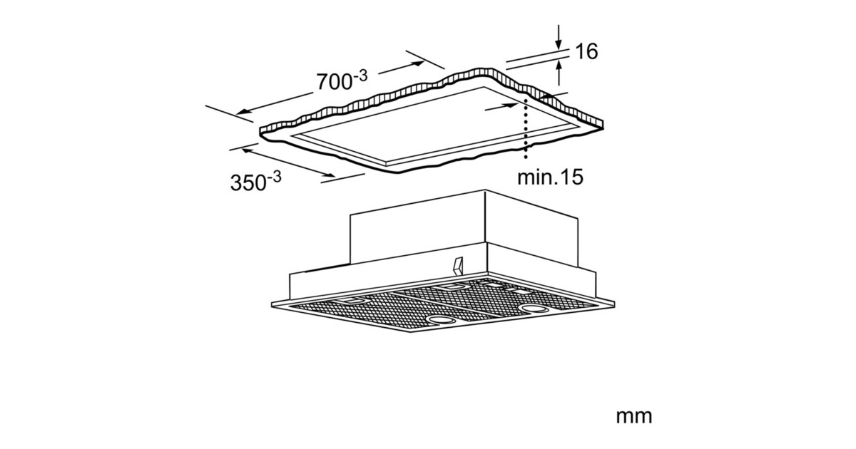 Für vorbereitete Schränke, Essen u.ä. sowie über Kochinseln |