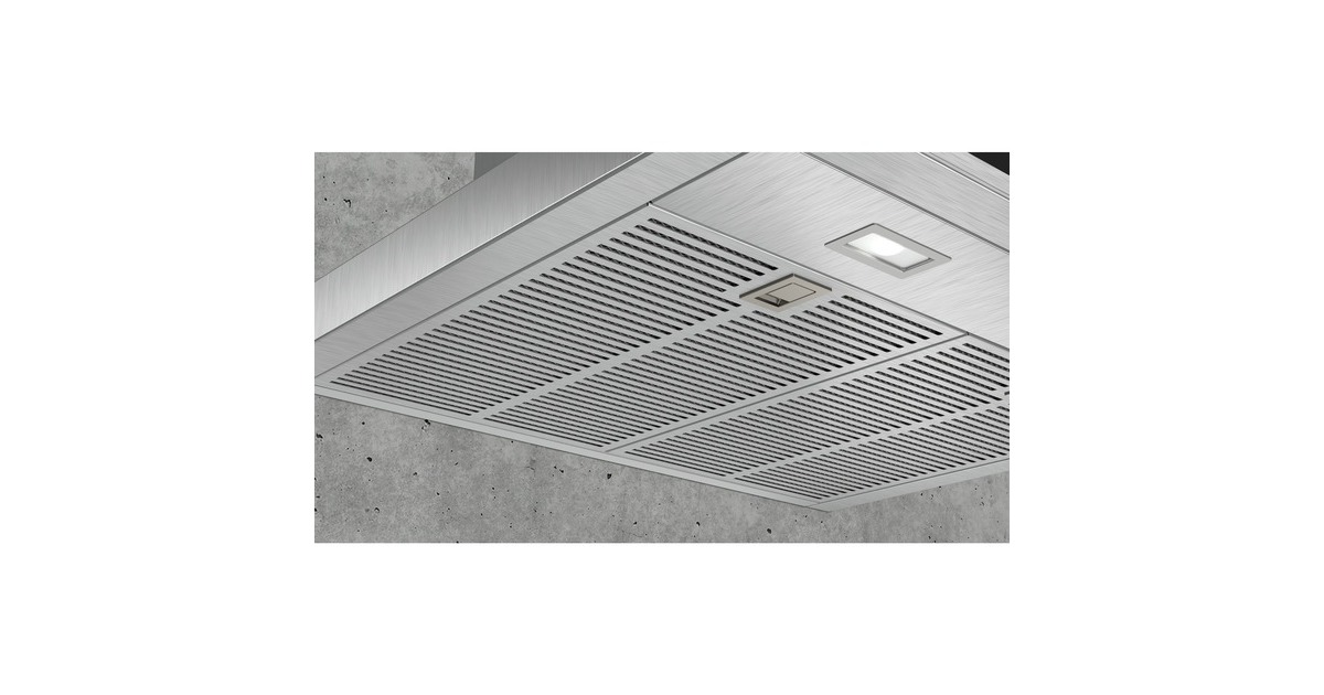 60 cm Wand-Esse; Box-Design; Filterabdeckung aus Edelstahl, gelocht und spülmaschinengeeignet |
