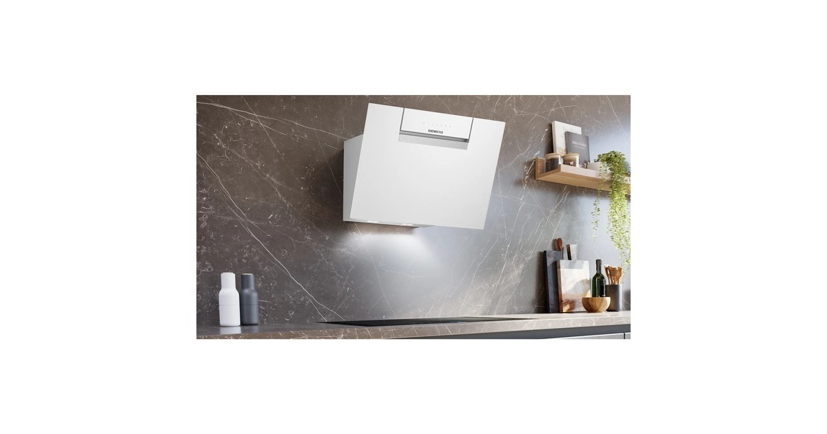 Die Siemens LC67KFN20 iQ300 ist eine hochwertige Wandhaube mit schrägem Glasschirm, 60 cm Breite und energieeffizienter A+ Klasse. Mit drei Leistungsstufen, Intensivstufe und einem leistungsstarken Gebläse von 431 m³/h passt sie sich Ihren Bedürfnissen an. Zwei Metallfettfilter sind inklusive und leicht zu reinigen. Die Bedienung erfolgt über das TouchControl-Panel oder via cookConnect System für kompatible Kochfelder. Kompatibel mit dem SmartHome-System Home Connect, kann die Haube auch per App gesteuert werden. Die Beleuchtung besteht aus zwei dimmbaren LED-Lampen mit je 3 Watt Leistung. Der leise Betrieb wird durch den iQdrive Motor ermöglicht und die Beleuchtung schaltet sich sanft ein und aus dank softLight. Hergestellt in Deutschland, zeichnet sich die Siemens LC67KFN20 iQ300 durch ihre hochwertige Verarbeitung aus.Art.-Nr.: 100035969