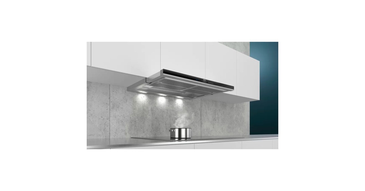 Die Dunstabzugshaube Siemens LI99SA684 eignet sich für den Einbau in einen 60 oder 90 cm breiten Oberschrank und sorgt mit einer Abluftleistung von bis zu 959 m³/h schnell für ein optimales Küchenklima. Drei Leistungsstufen und zwei Intensivstufen mit automatischer Rückstellung sowie die Arbeitsplatzbeleuchtung mit drei dimmbaren softLight LED-Modulen à 1,5 Watt lassen sich elektronisch mittels TouchControl komfortabel steuern. Die 90 cm breite Flachschirmhaube überzeugt darüber hinaus mit einem automatischen Gebläsenachlauf, einer Sättigungsanzeige für den Fett- und Geruchsfilter sowie einem Luftgütesensor, der die Dampfintensität misst und Kochgerüche erkennt, um die Abzugsleistung automatisch anzupassen. Zur verbesserten Reinigung und mehrfachen Verwendbarkeit sind der Metall-Fettfilter sowie die Filterabdeckung aus Edelstahl spülmaschinengeeignet, was Geldbeutel und Umwelt schont. Mit einem Stromverbrauch von 41 kWh im Jahr ist die LR96CAQ50 in die Energieeffizienzklasse A eingestuft.Art.-Nr.: 1676550