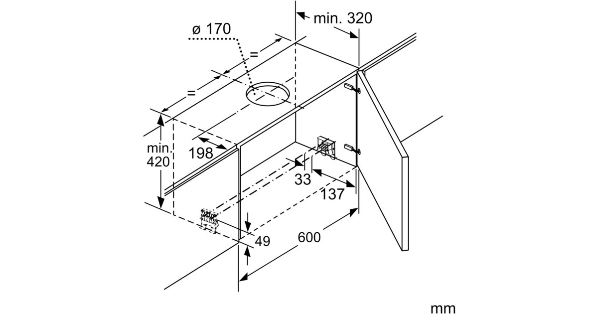 Einbaufähig in 60 oder 90 cm breiten Oberschrank; Schnellmontagebefestigung; mit Rückstauklappe |