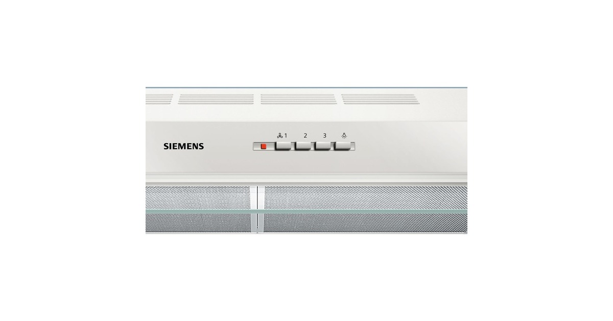 Die Dunstabzugshaube Siemens LU63LCC20 ist für die Montage unter einem Hängeschrank oder an der Wand geeignet und führt den aufsteigenden Dampf vom Kochfeld mit drei Leistungsstufen schnell und restlos ab. Über Drucktastenschalter lassen sich bei der 60 cm breiten Unterbauhaube alle Leistungsstufen sowie die Arbeitsplatzbeleuchtung mit zwei LED-Lampe á 4 Watt bequem steuern. Zudem ist die LU63LCC20 mit einem spülmaschinengeeignetem Aluminium-Fettfilter ausgestattet.Art.-Nr.: 1447879
