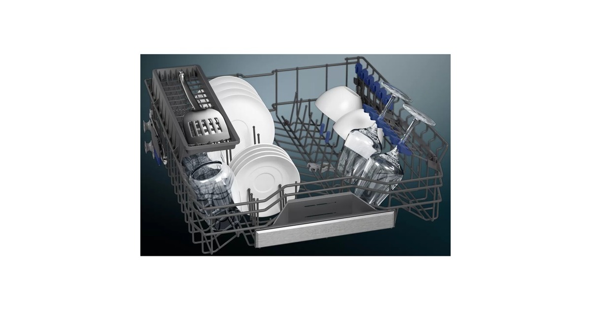 höhenverstellbarer Oberkorb mit rackMatic (3-stufig), 2x umklappbare Klappstachelreihen, Tassenablage (2-teilig), glassZone, Leichtlaufrollen, Besteckablage |