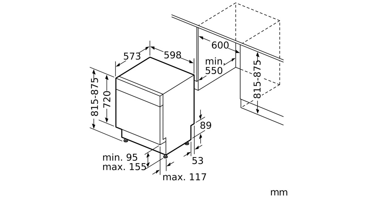 Innenbehälter/ Boden: Edelstahl/Edelstahl, höhenverstellbare Füße nur vorne, Höhenverstellung Füße maximal 60 mm, Verstellbarer Sockel: Horizontal und Vertikal |