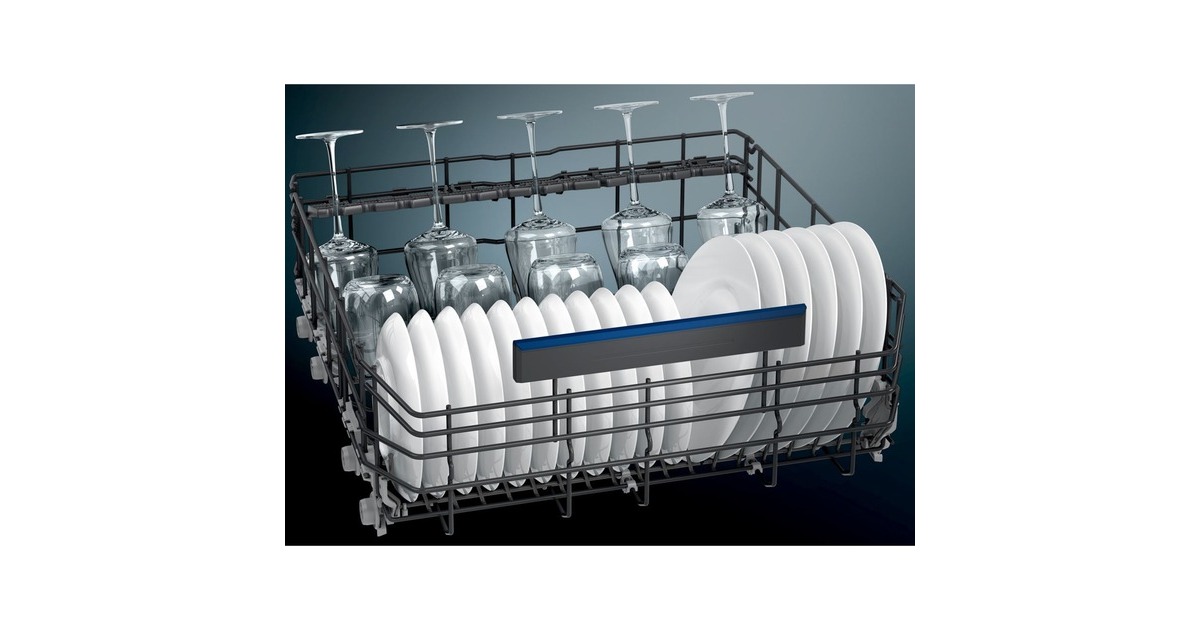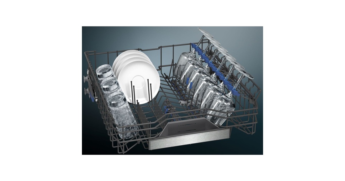 flexComfort Korbsystem mit blauen Verstellmarkierungen, glassZone, varioSchublade, Besteck-Schublade, Tassen-Ablage |
