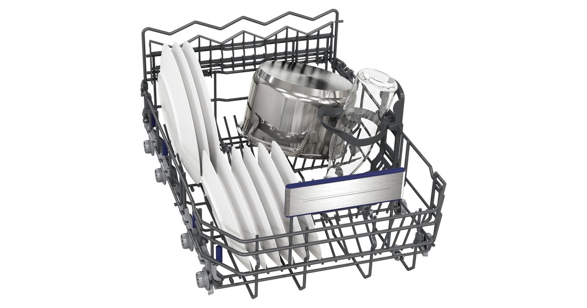 Komfortrollen, Korbstopper, 4x Umklappbare Klappstachelreihen, Tassenablage (2-teilig), Gläseranlagebügel |