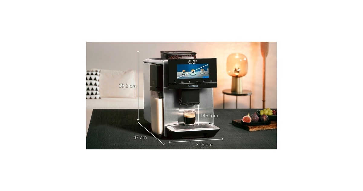 Frischer Kaffeeduft steigt in die Nase und verspricht perfekten Geschmack und eine Pause vom Alltag. Mit dem EQ900 plus kann nichts diesen Moment stören, nicht einmal der Gedanke an die Reinigung und Entkalkung des Kaffeevollautomaten. Denn die übernimmt er einfach selbst. So geht maximaler Komfort bei der Kaffeezubereitung. Stärke, Brühtemperatur, Milchanteil – der perfekte Kaffee erfüllt eine ganze Reihe individueller Anforderungen. Dank des baristaMode können Wasser- und Kaffeemenge, der Mahlgrad, die Brühtemperatur und -geschwindigkeit sowie die Milchmenge beim EQ900 plus ganz nach den eigenen Vorlieben eingestellt und angepasst werden. So bleibt nichts dem Zufall überlassen. Und ist die perfekte Kombination gefunden, wird sie ganz einfach im persönlichen Profil gespeichert und steht so jederzeit zur Verfügung. Wer sich erst noch mit den verschiedenen Einstellungsmöglichkeiten vertraut machen möchte, wählt den comfortMode und erhält so auf Knopfdruck perfekt abgestimmten Kaffee. Internationale Spezialitäten gibt es in der Siemens coffeeWorld. Zusätzlich zu den bis zu 9 klassischen Getränken, bietet diese Kaffeetrinkenden die Auswahl aus bis zu 10 Spezialitäten aus acht verschiedenen Ländern und bei Bedienung per App sogar bis zu 21 länderspezifische Getränke. Morgens kommen ein entkoffeinierter Cappuccino und ein extrastarker Espresso auf den Frühstückstisch? Mit dem dualBean System ist das kein Problem. Dank der separaten Bohnenbehälter kann jederzeit zwischen zwei Kaffeesorten gewählt werden. Jeder Behälter verfügt zudem über ein eigenes elektronisch einstellbares Mahlwerk. Der eGrinder gibt volle Kontrolle über den Mahlgrad für jeden Getränkewunsch. Und wer mal nicht weiterweiß, nutzt das intelligente beanIdent System. Das passt alle Einstellungen optimal an die gewählte Kaffeebohne an und holt das Beste aus ihnen heraus. Damit jederzeit perfekter Kaffeegenuss möglich ist, muss der Kaffeevollautomat regelmäßig gereinigt und entkalkt werden. Der EQ900 plus übernimmt das ganz von alleine und ohne die Kaffeezubereitung zu beeinträchtigen. Ist eine Reinigung nötig, startet der EQ900 plus diese erst, wenn er ausgeschaltet wird. Und wenn eine Entkalkung erforderlich wird, macht der EQ900 plus vorab darauf aufmerksam und ermöglicht es, den Startzeitpunkt frei zu wählen. Das Programm startet dann automatisch und der EQ900 plus schaltet sich nach der Entkalkung wieder aus. Bei so viel Auswahl verliert man schnell den Überblick – nicht so beim EQ900 plus. Er verfügt über ein 6,8 Zoll großes iSelect Display und ist intuitiv per Touch-and-Slide zu bedienen. Das übersichtlich gestaltete Menü bietet Zugriff auf alle Funktionen und sorgt für schnelle Orientierung. Und wer seinen Kaffee schon aus dem Bett heraus zubereiten lassen möchte, nutzt dafür die Home Connect App. Dort können Kaffeewünsche und Timings eingegeben werden und der EQ900 plus übernimmt den Rest. Wissbegierige finden dort auch weitere Informationen zu Herkunft und Zusammensetzung der internationalen Kaffeespezialitäten.Art.-Nr.: 100043649
